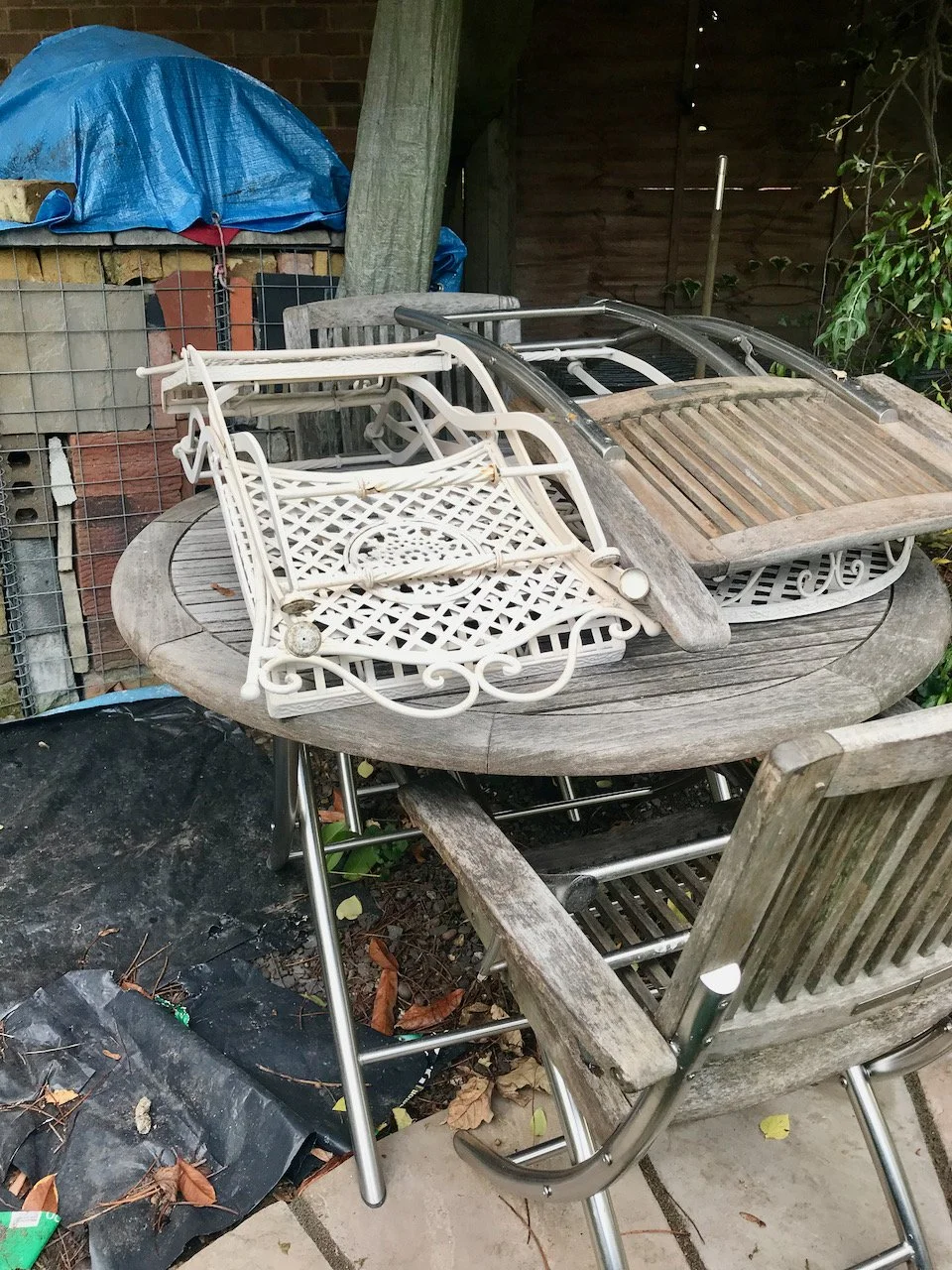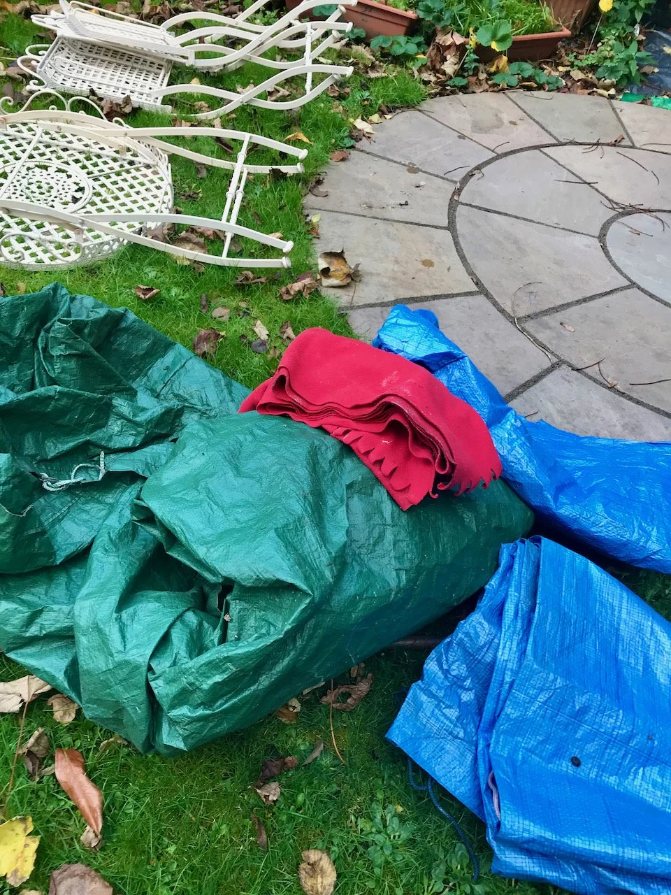 By the time I’d lugged the wooden table and chairs up the length of the garden - dodging the lawnmower - and then getting them stacked as I wanted, there was much more grass making an appearance. I also got to cover the pizza oven and while MOH was starting to feel pleased with his efforts, we both knew that there was more to do.