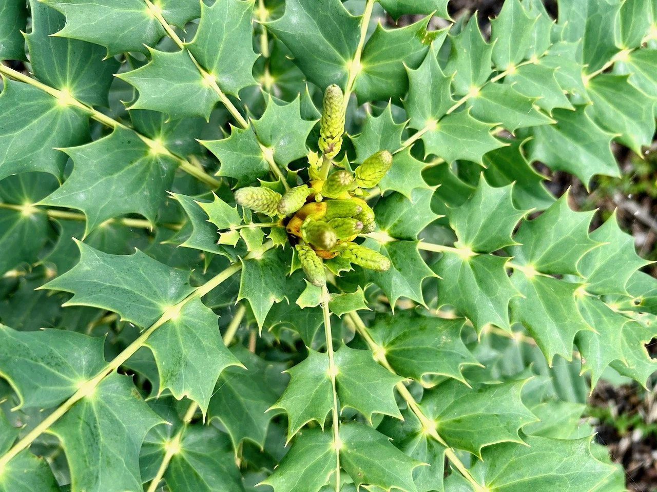 We have two mahonias and I’m keen to see how each do in the spots they’re in. One definitely has more sun, and it’s that one that I’ve snapped during the month. The other is in the inner border, and it’ll be interesting to compare them - though it’s currently much smaller and less developed. They’re fascinating plants, this one I’ve snapped leaning over the wall to get a top-down shot of it in the outer border.
