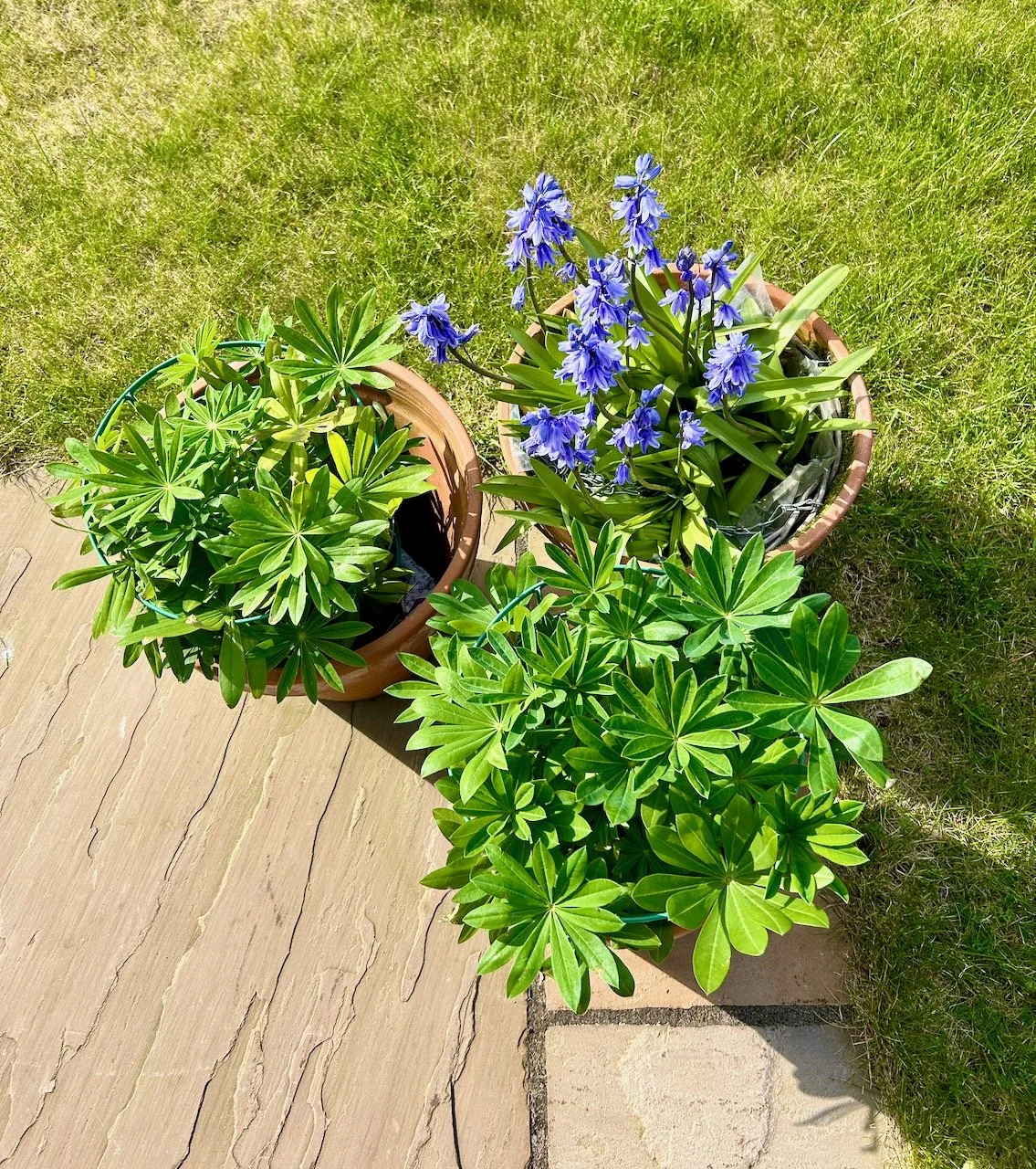 The lupins we bought at the Newark Garden Show paired up with some bluebells from dad on the edge of the patio, replacing the tulips and before them the daffodils. I’m enjoying having a burst of colour here, though it’ll be interesting to see how and if I can keep this going throughout the summer, especially when the patio space is more in demand!