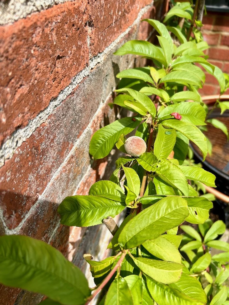 Just before we went away MOH spotted some small furry fruits on the nectarine tree which I planned to grow against the old brick farm wall - I was grateful that my longer term plan looked as if it would come to fruition (sorry!), though not really sure if they would last for long. And while there were fewer when we returned, there were still definitely some on the plant, and they were larger, so who knows, at some point this summer MOH and I may share a small nectarine, or two if we’re lucky.