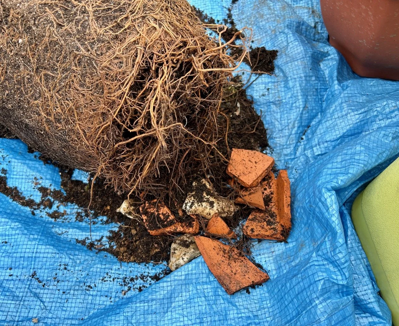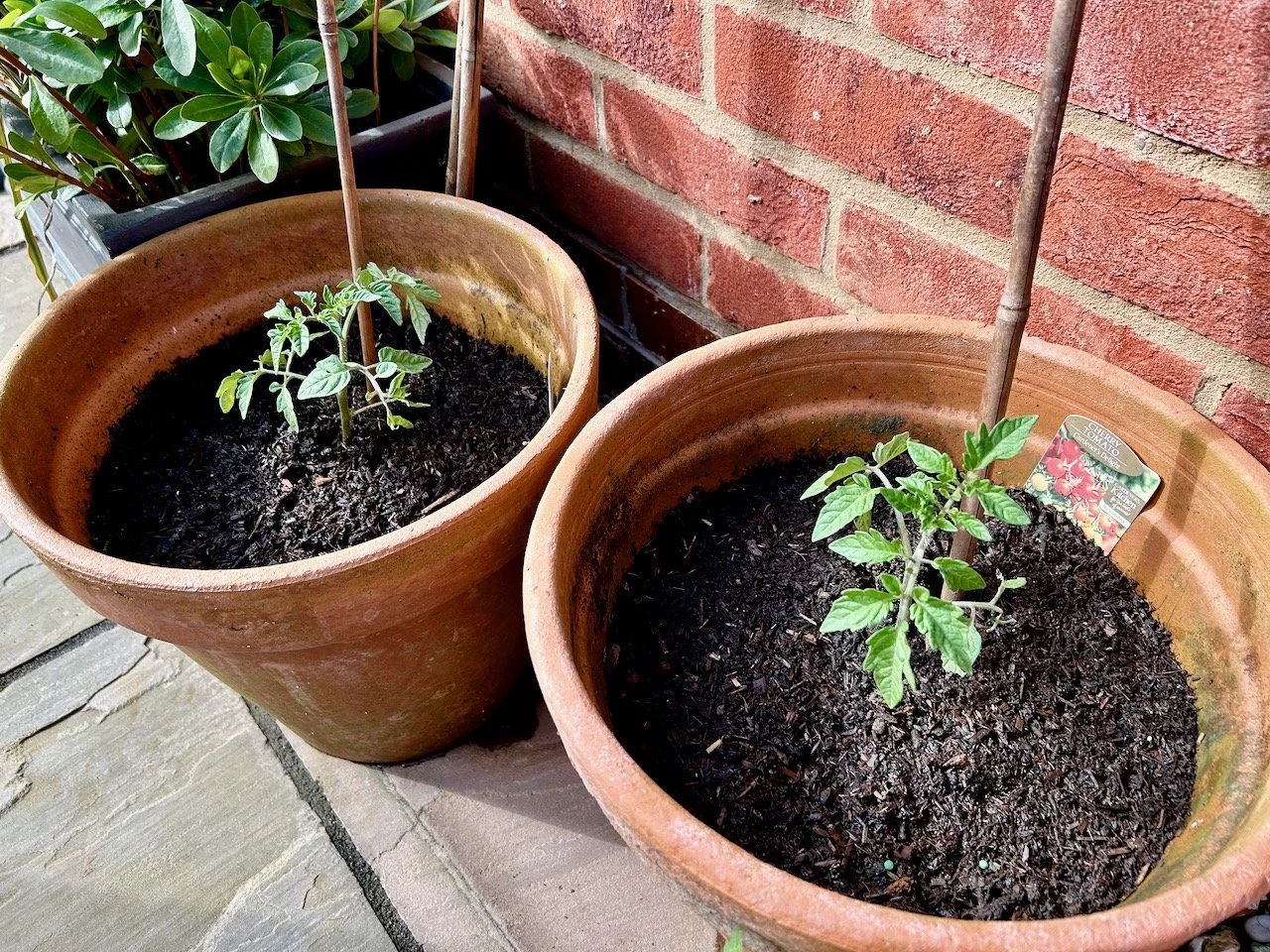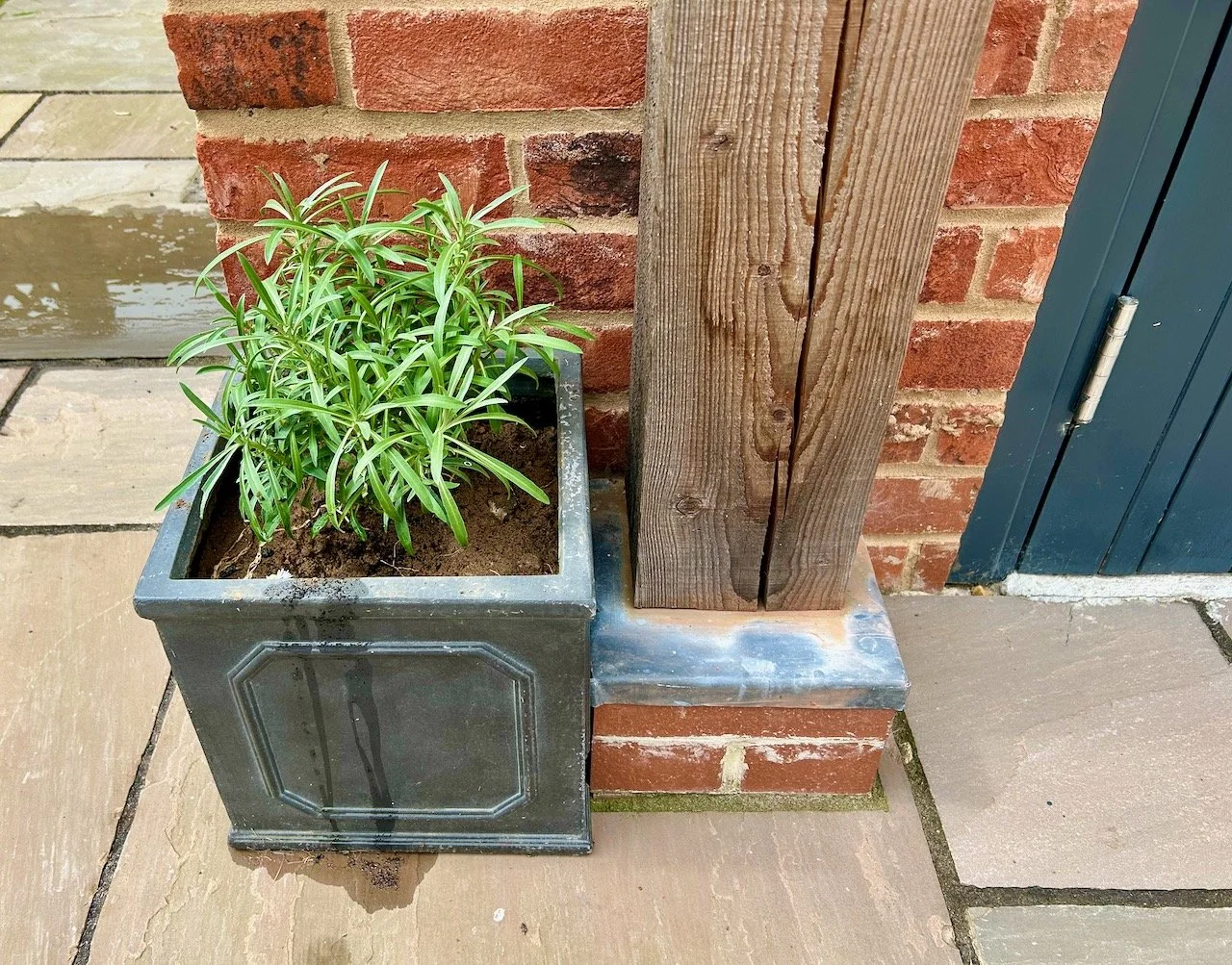I knew I needed to do something about them as when I tried to move them I realised they’d rooted through the pots and were making themselves at home, and then inspiration struck - herbs are most useful when they’re close to where you want to use them. Having them close to the kitchen bi-folds didn’t work, but I did have a spot, that got the sun, right by the back door.
