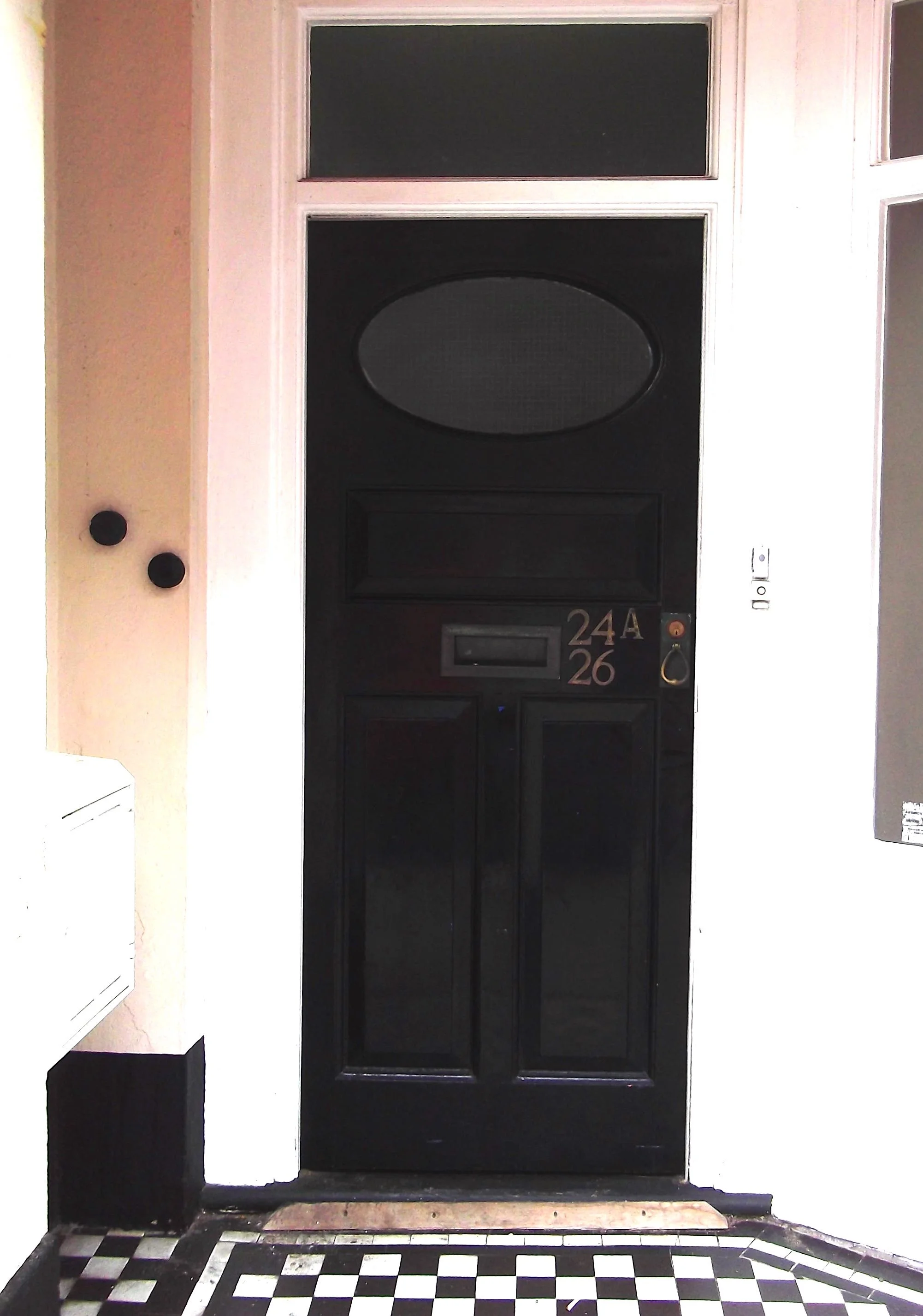 This was another favourite of the ones I saw, with its oval window. It's the elegantly styled door pull underneath the Yale lock and the classic black and white tiled flooring, along with with what I suspect are the original bells on the left did it for me. At first glance, you just see a door, but there is so much more to see!