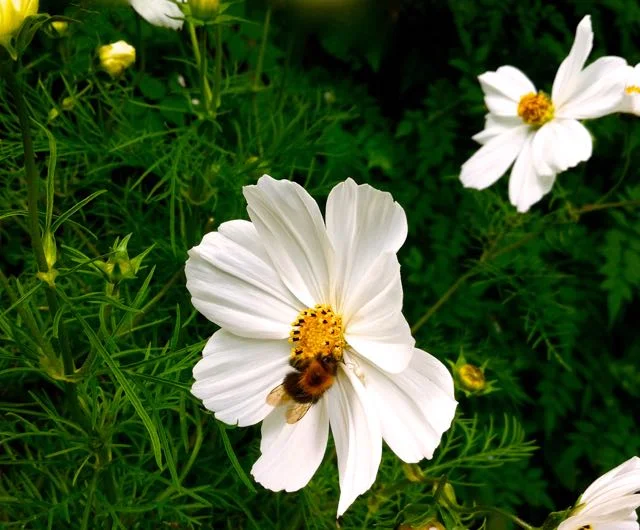 As I wandered up the garden one morning I saw this bee going about its work on the cosmos and as luck would had it my camera was to hand. So this week's photo is of that.