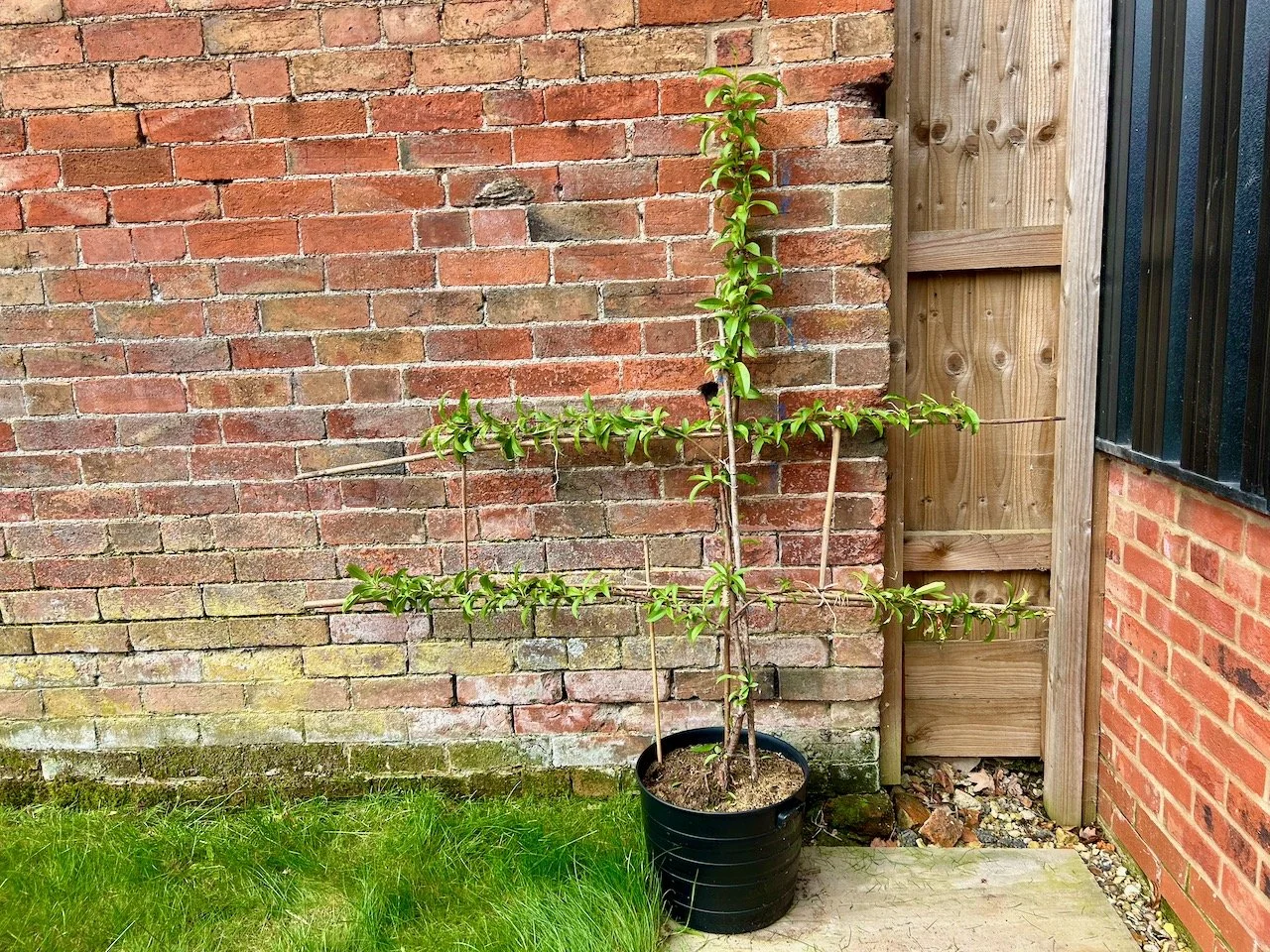 The small apple tree which we brought from London is also back in leaf. I’ve been wondering where we can plant this and coming up blank as the gaps we have are a bit too close to the house, or as the tree grows would block views we currently enjoy. Talking through the start of our garden plans with MOH we realised that the back wall might also be an option for this tree, though it is much more mature than the nectarine tree above I’m going to look at it more closely to see if that too can also be trained to grow along a frame. I suspect that it would benefit from refreshed soil and some weeding in any case - as over the past few years it’s been left to fend for itself standing on the step outside our old shed.