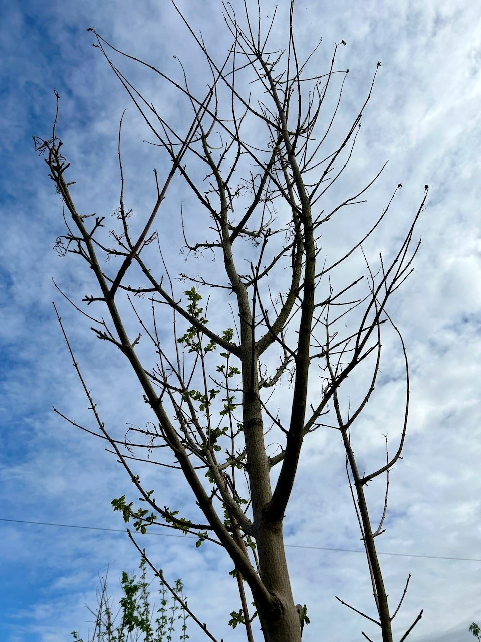The trees have started to flourish this month, and some more than others but I’ll come onto that. The crab apple tree started with the deepest pink blossom, which faded to pale pink and then white as the flowers opened. By the end of the month most of the blossom has gone - either naturally or helped by the wind, so I’m hoping that we’ll have plenty of crab apples to harvest later in the year.