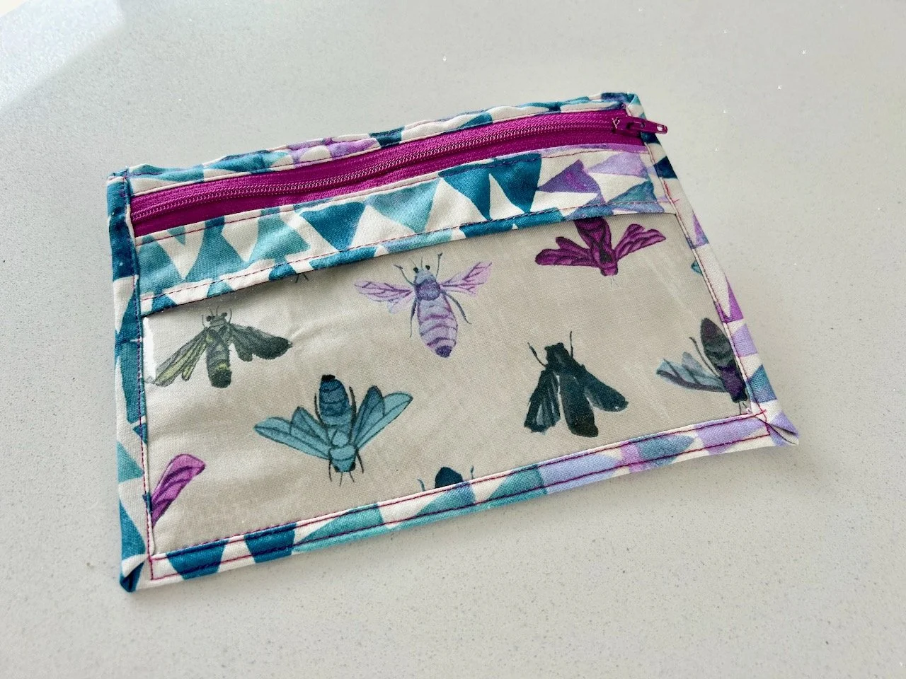 I realised after I’d finished that while I’d used the fleece lining on the pocket’s lining (the insect fabric) I hadn’t used the thinner interfacing anywhere, and it probably would have benefited from it, at least on the strip below the zip.