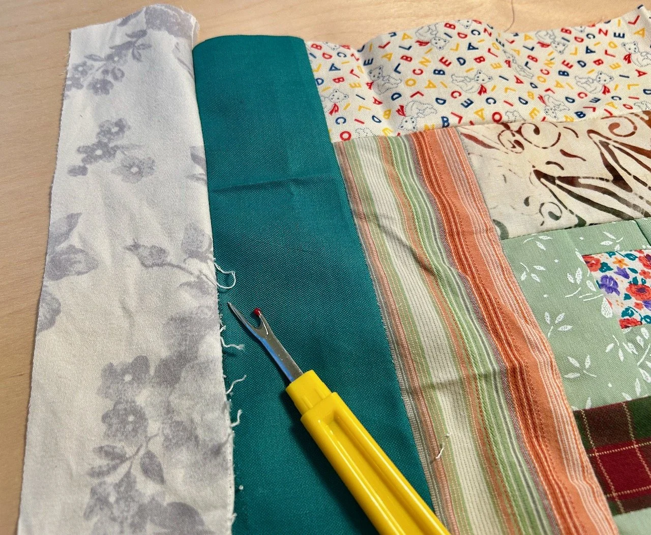 You’ll have seen that I plan to complete Sherri’s mystery block a month quilt and yesterday I shared the test blocks which I made into my third Project Linus quilt, well today I’m sharing the log cabin block I made for my own quilt.
