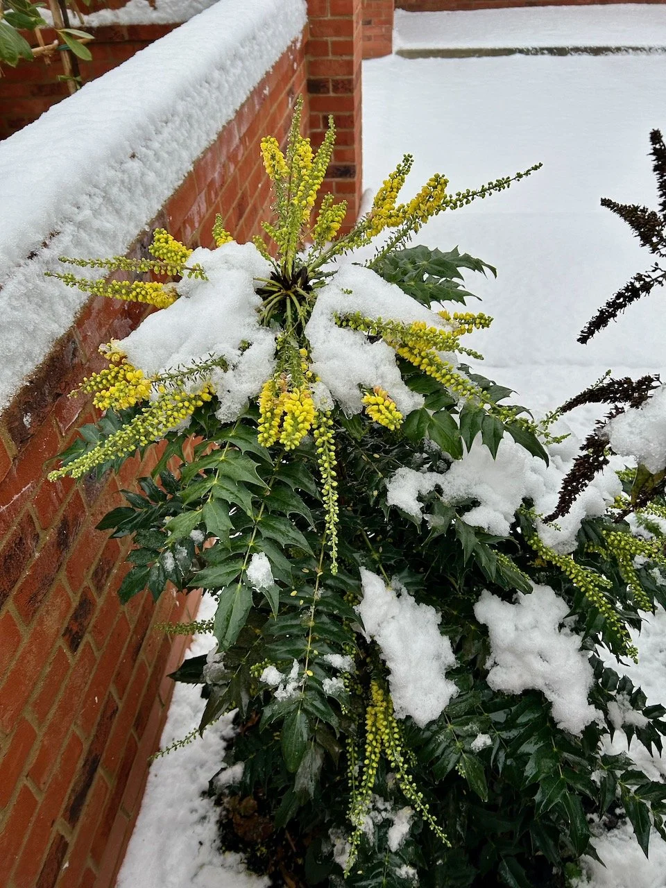 Though somehow the mahonia still managed to look quite majestic with snow trying its best to dull its crown.