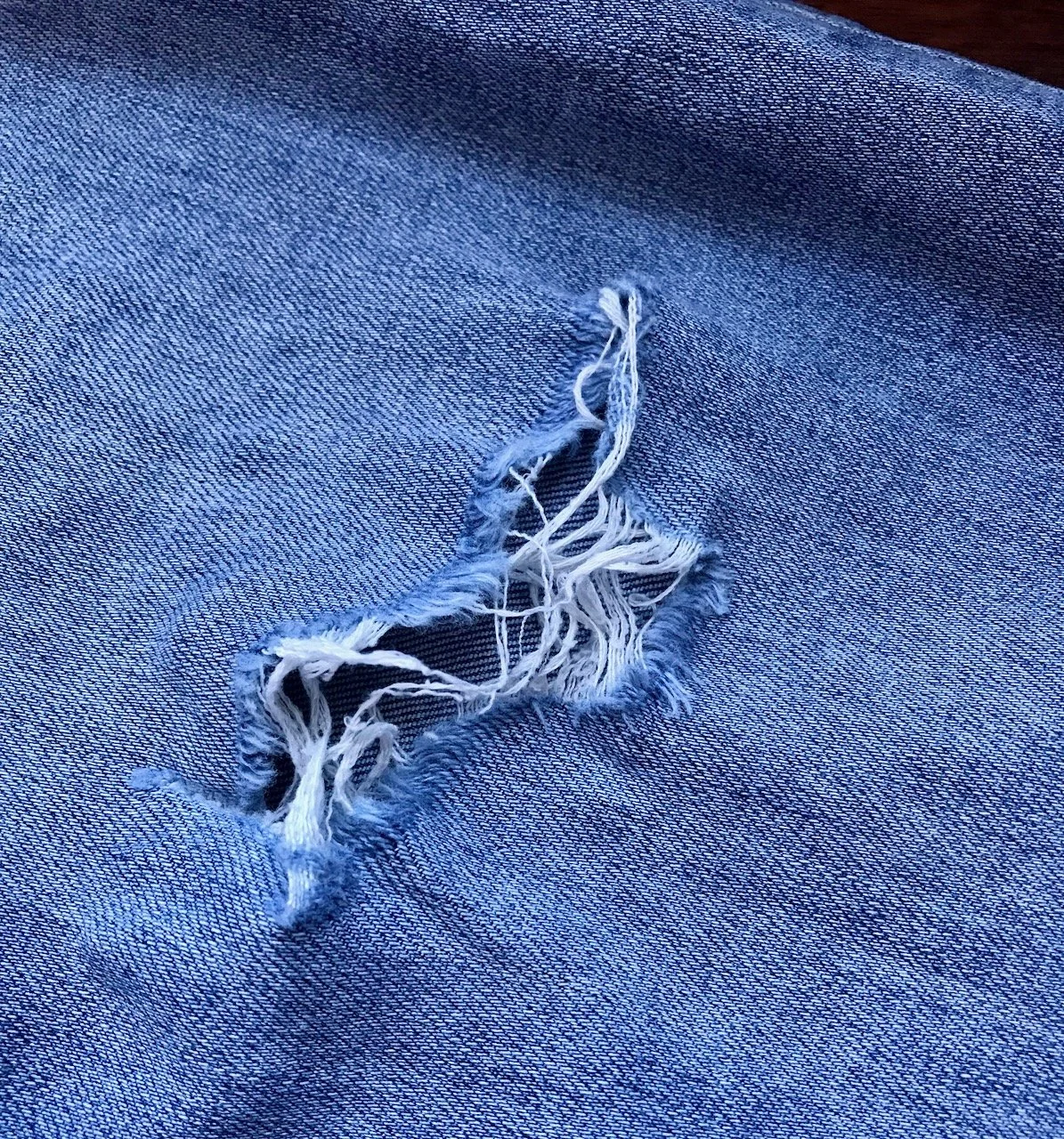 One of the original pairs I bought came complete with wear and tear, turn ups and a ripped knee. Over time the rip on the knee grew, not helped by my foot looking for shortcuts when putting them on. It grew too much for me, and so I decided to tackle it, and after a quick repair, I think it’s worked well - and I think I prefer the rip this way.
