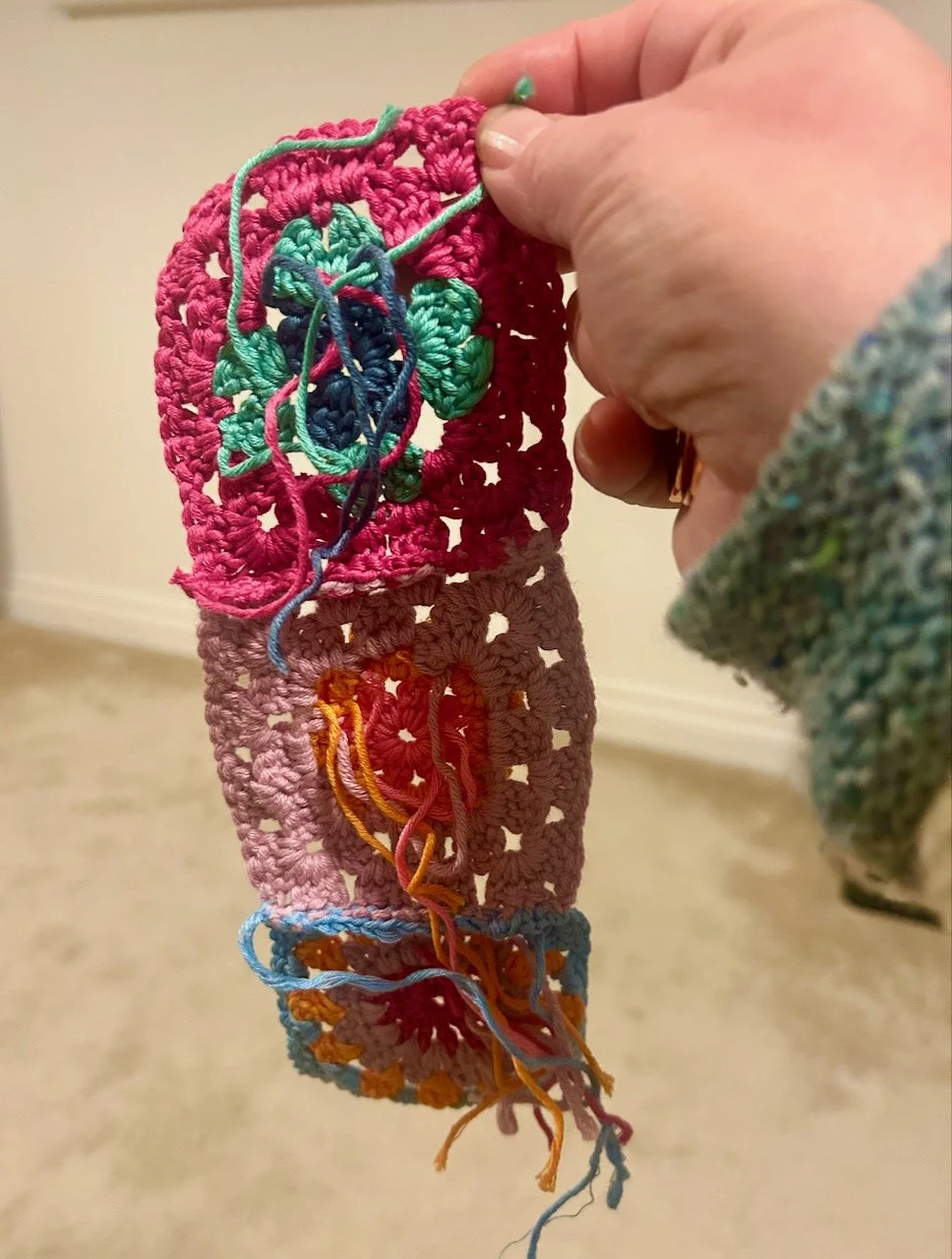 I’ve taken the opportunity to pick up a longterm work in progress crochet project, which is at the very unfulfilling stage of having its ends sewn in and then pieced together. I’m on the last small section, so there is light at the end of the tunnel, but oh so many ends to sew in - it’s not my favourite task that’s for sure!