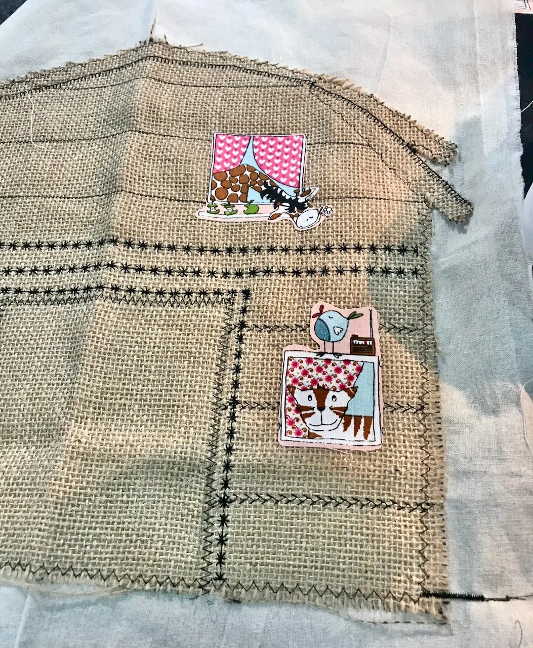 The workshop that I booked at the Knitting and Stitching Show was to create a rustic barn - and gave me the opportunity to experiment with the decorative stitches on the sewing machine and cut out fabric and use bondaweb to stick it onto a separate piece of fabric and then stitch it on to secure it. When you put it like that, it’s a strange kind of activity isn’t it?