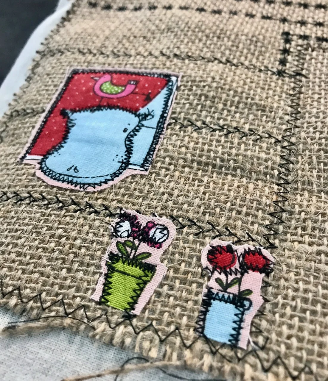The two hour workshop gave the opportunity to use a ready made kit to practice the techniques, and free rein to do whatever the urge took. Thankfully mine was pretty restrained on the day, and I was so enamoured with the process that I did more to finish it off the next day, and have ordered some more bondaweb so I can carry on to my heart’s content.