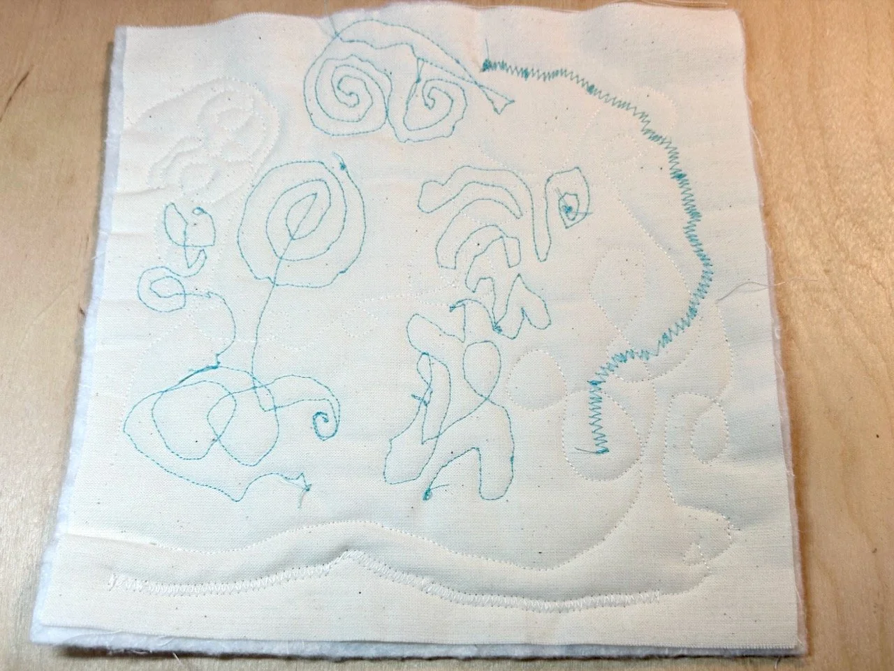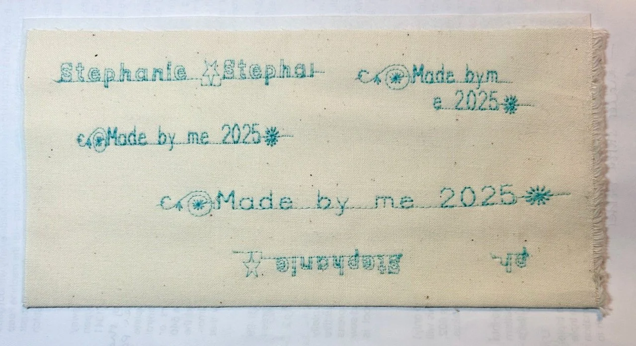 We learnt how to program stitches into the memory, and to adjust the spacing in those. This has potential for lots of uses, especially for quilt labels so I think I’ll be playing, or rather testing, this out some more.