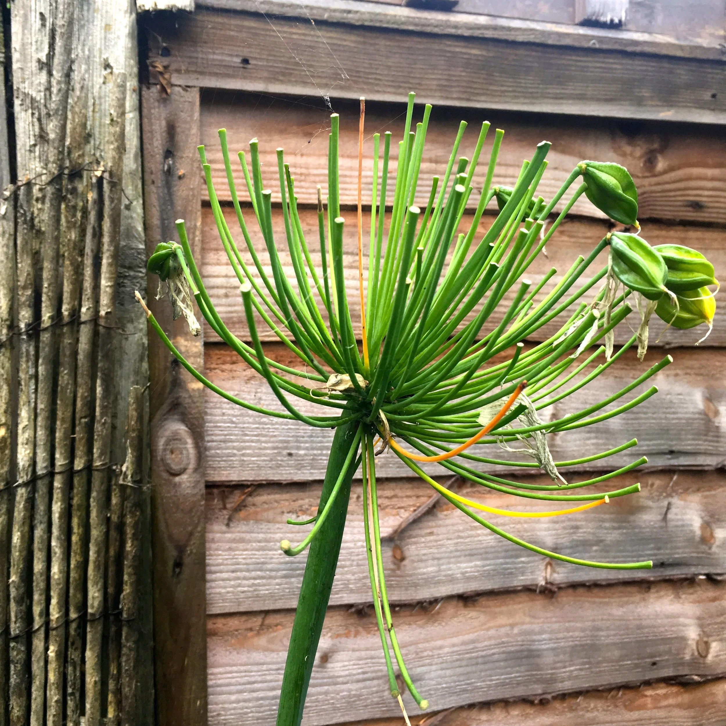 Our agapanthus have had a quieter year this year, with only three or so flowers. The seed heads are dropping off now but the structure of the head remains, for now. I’ll need to cut the stems soon so that the plants can regenerate and provide plenty more flowers next year. We lost a couple of our agapanthus plants this year, I think because they got so wet, so I’ll be covering them with fleece again this winter to offer them some protection.
