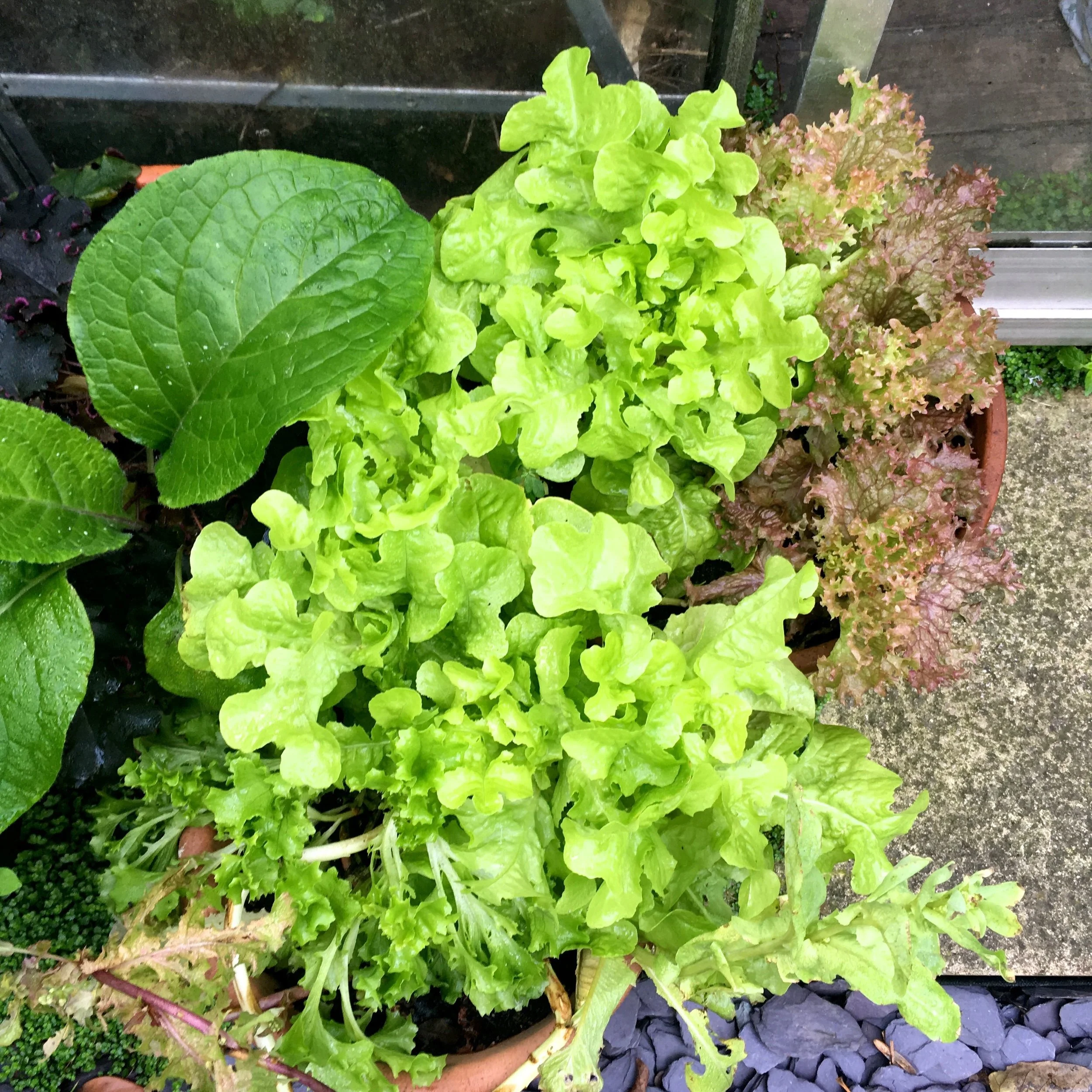 Strangely the lettuce seems to have come into its own. Yes, in the month when I’m least likely to eat salad I have lettuce a plenty (and don’t worry, that darker green leaf of the left of the picture below, I know that’s not a lettuce, so we’re not about to eat it).