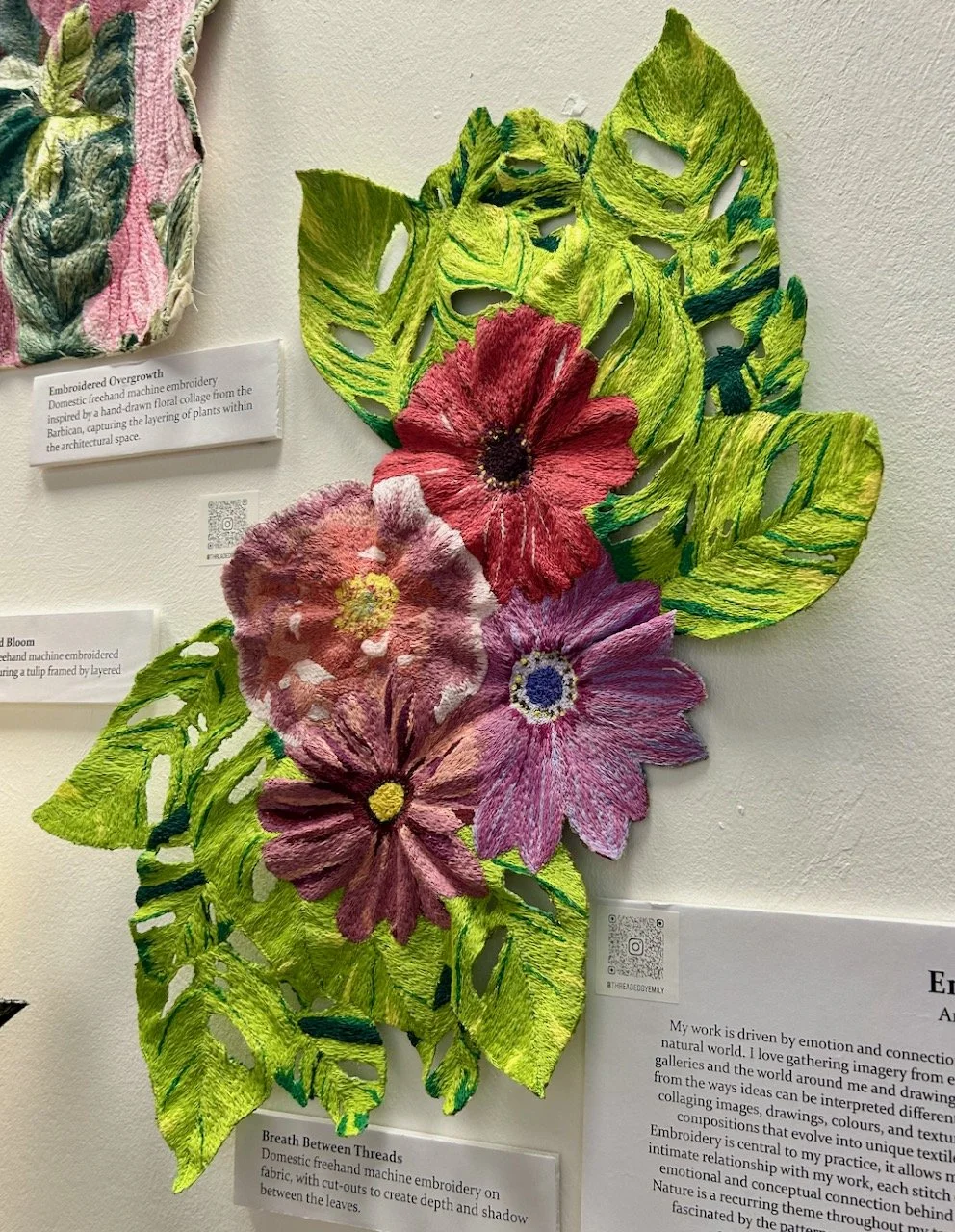 If you’re wondering how the ‘Breath Between Threads’ piece is created the label beneath it reads ‘Domestic freehand machine embroidery on fabric, with cut-outs to create depth and shadow between the leaves’ - and isn’t it gorgeous?
