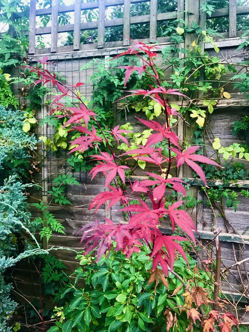 The potted acer, which has grown so well this year, kept its leaves for most of the month. I was glad to get a picture of it when I did, as wouldn’t you know it but the very next day the leaves had completely gone. Not one remained!