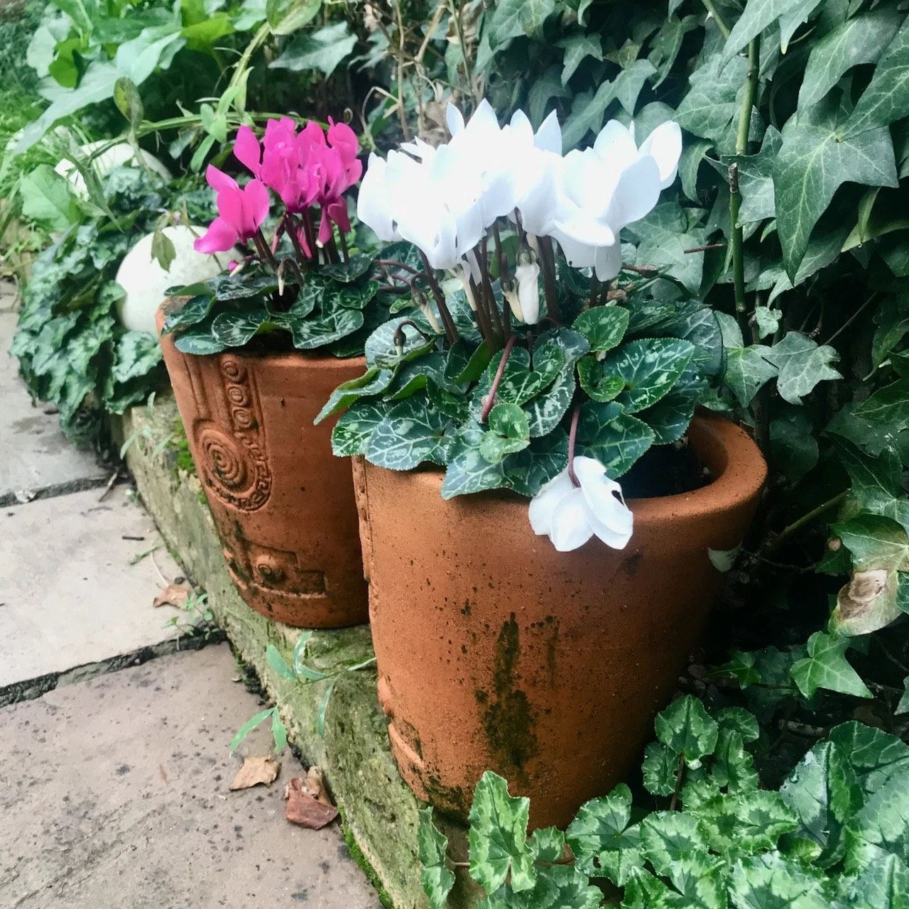 The winter bedding planted up last month is continuing to do well, though the cyclamens are doing much better than the violas which seem to be having a bit of a flowering break. Hopefully they’ll be back - they’re not as bold as the cyclamen though, so perhaps they’re just doing their thing in a more subtle way. Though it’s not really a season for subtlety when mostly the garden is viewed from indoors.