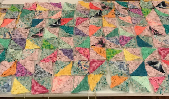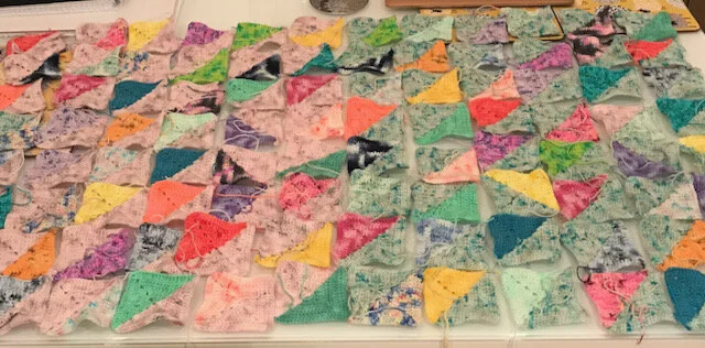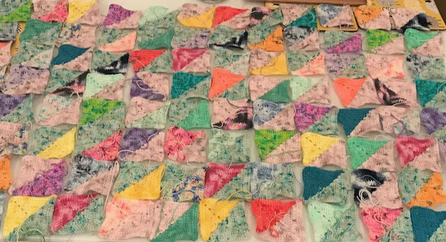 I’ve spoken about the yarn advent calendar from last December here before, and slowly I’ve been working to create my half and half squares, adding in two neutral colours - two because I couldn’t choose between them. This as always going to be a colourful throw, and in my mind’s eye it was always going to be random.