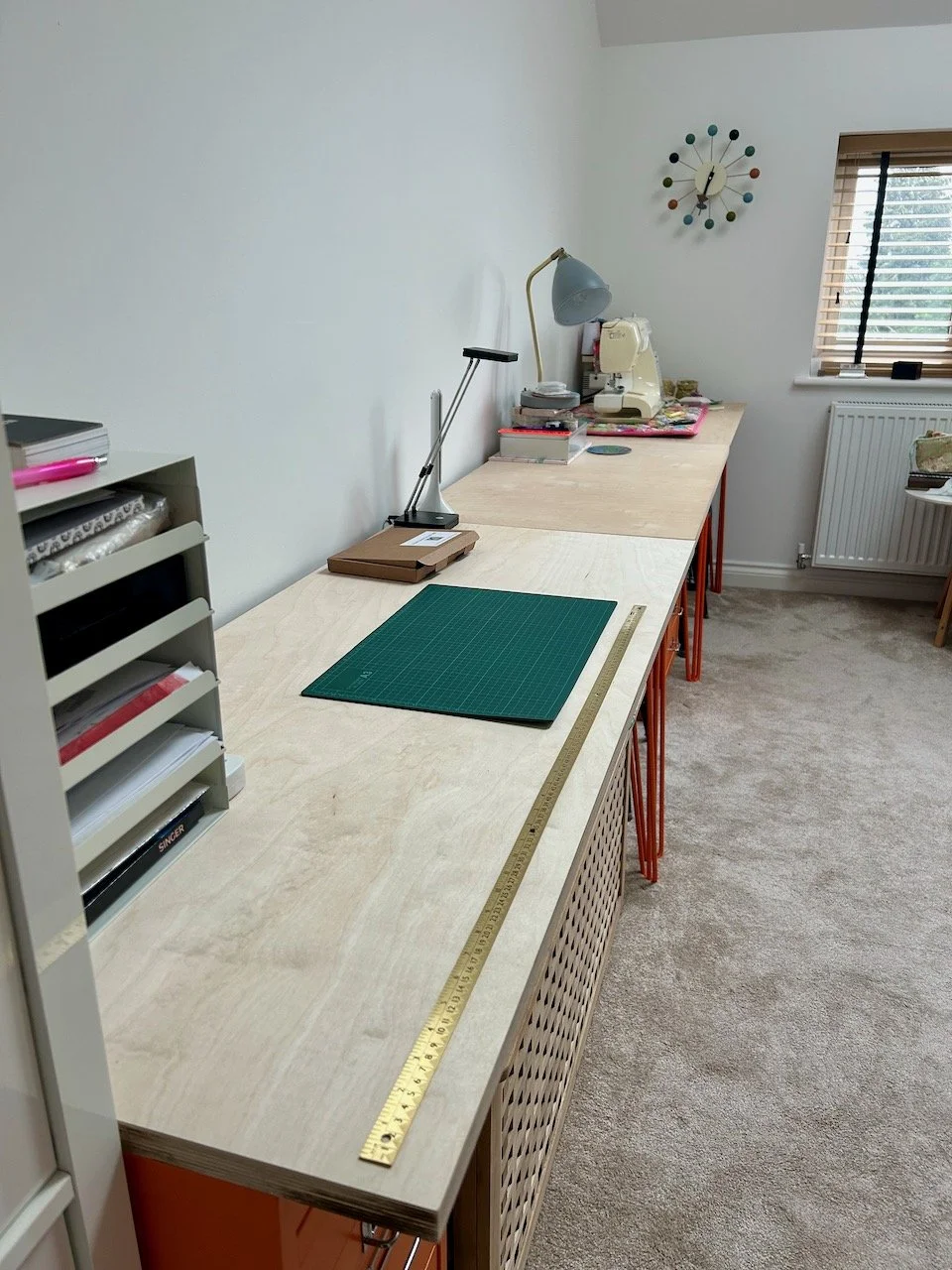 I also took the opportunity to switch around my existing two desks to make better use of the space. So my sewing area is now closest to the window, and my overlocker machine is happy to sit in the far corner of the desk which keeps it out of the way, but close enough for it to be handy too.