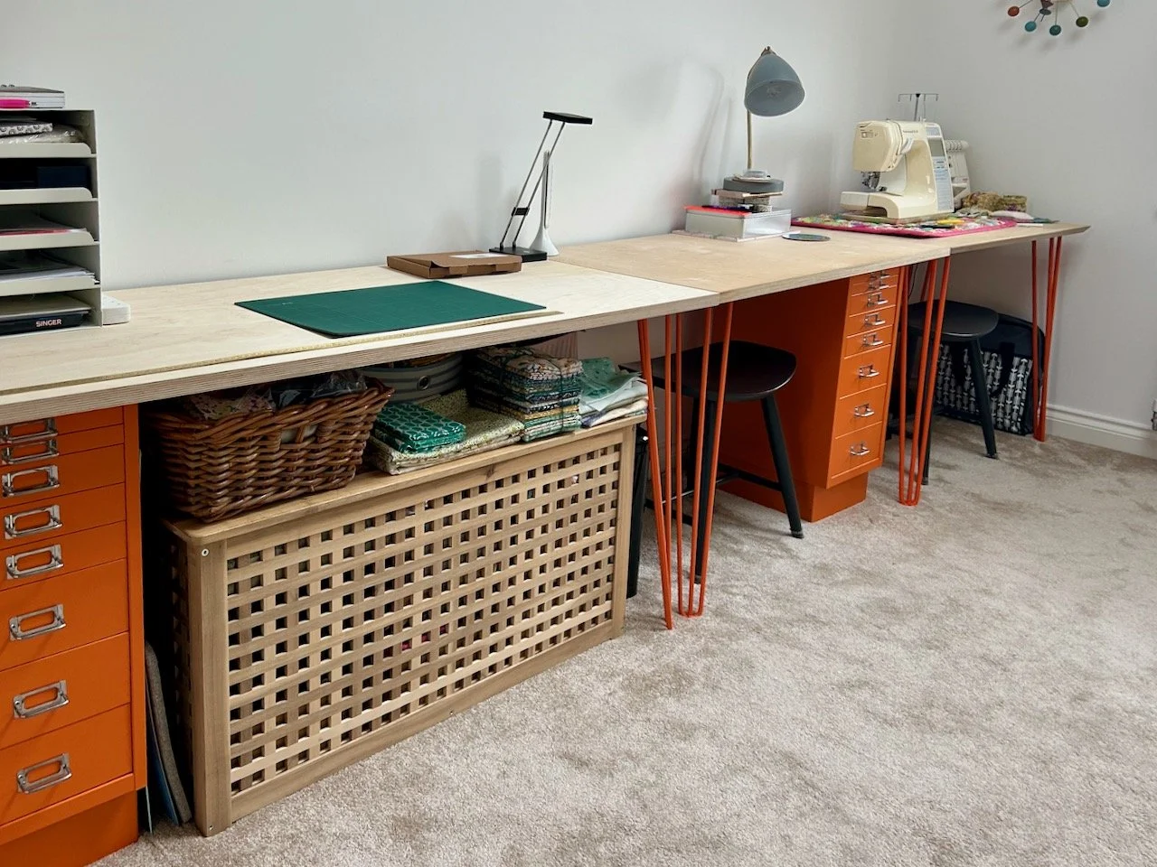 As it worked out there’s also a gap between the first set of drawers and the large storage chest which is ideal for both my craft mats and the wool ironing pad - it’s almost like it was planned. And at the other end of the large storage chest, nestled between the hairpin legs (but not on show) is space for the shredder, which previously didn’t really have a useful home.