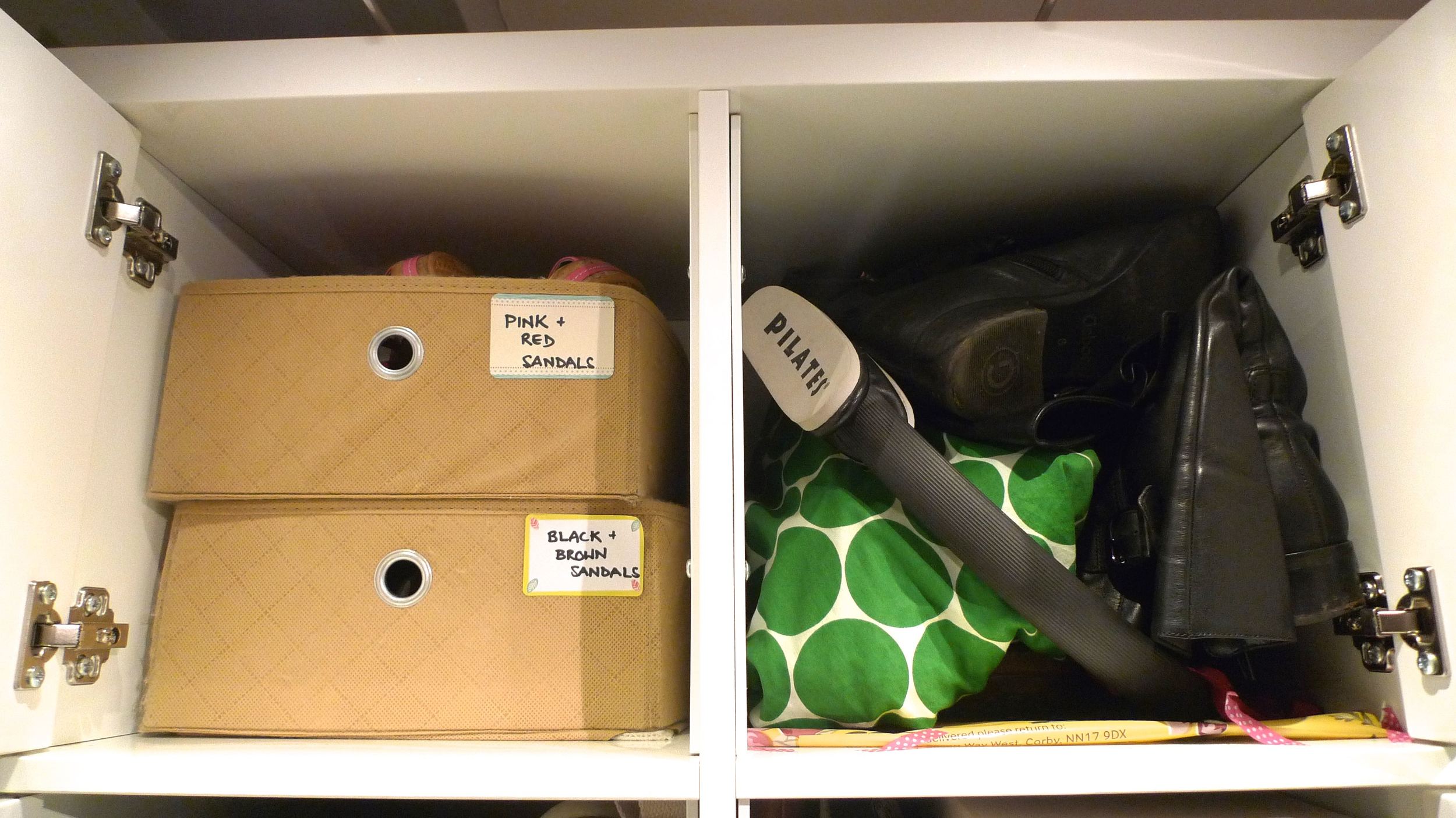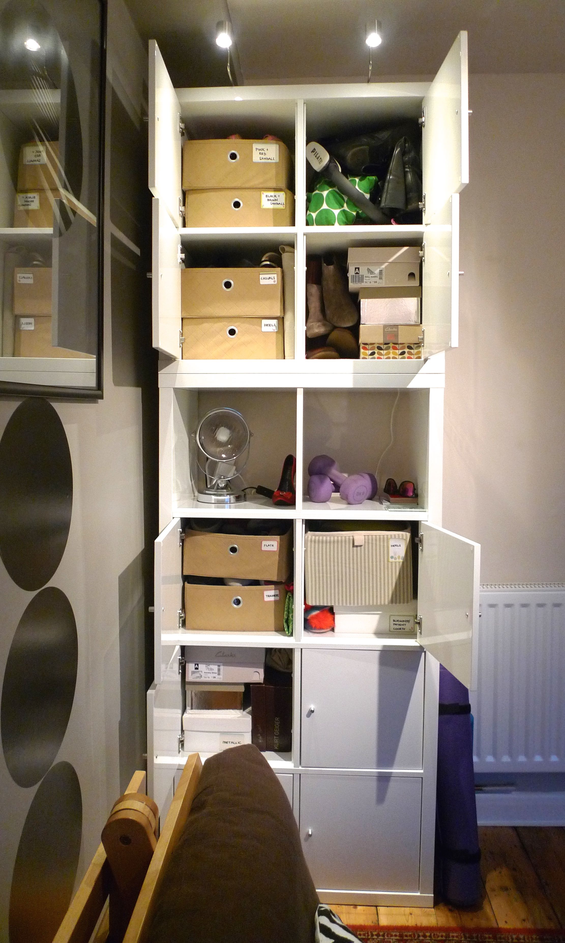 And yes the top right cupboard also has a pilates circle in and isn't so organised as the rest of the unit. But, hey it's got to go somewhere and boots were slightly trickier to fit in tidily. There are at least four pairs of knee length boots in there - and yes, I need all of them!