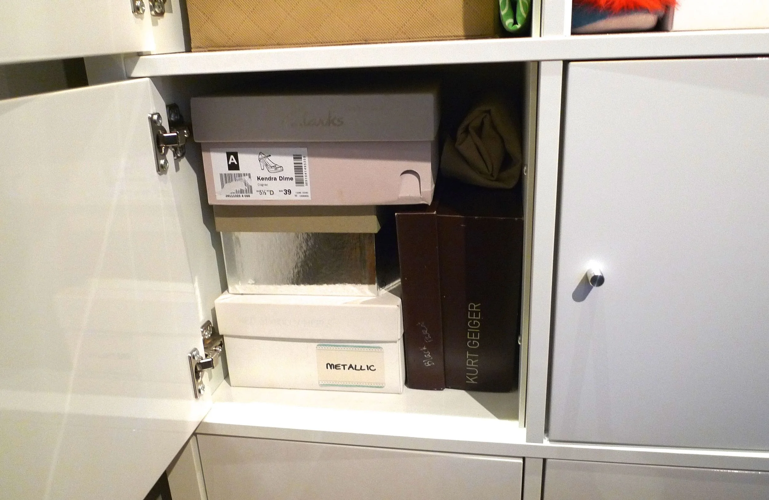 I'd spotted some racks in IKEA which did just that, and seriously coveted them. However, because the decorating on our middle floor - where the spare room is, didn't take place until earlier this year the shoe wardrobe was put on hold and during that time many of my shoes were stored in a large cardboard box in the conservatory. Occasionally you'd find me in the box head first, searching frantically for the pair of shoes I wanted to wear, that I was sure was in this box. Somewhere...