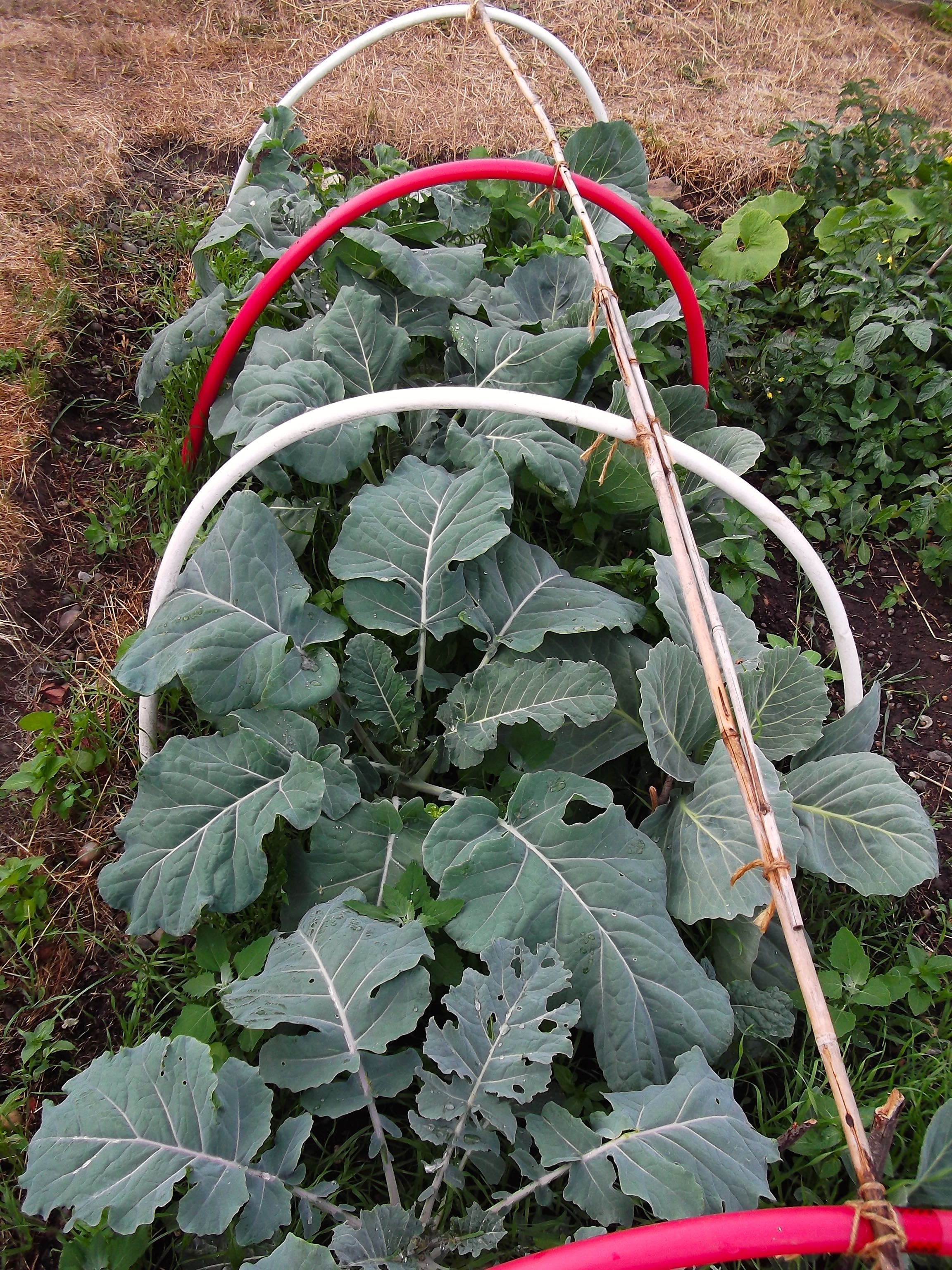 The cabbages and purple sprouting broccoli that I planted towards the end of June have flourished (see how small they were here). So much so that I removed the netting this afternoon, I'd spotted a cabbage white butterfly inside the net so if they were getting in there really didn't seem much point. I just hope that the foxes behave with my brassicas.