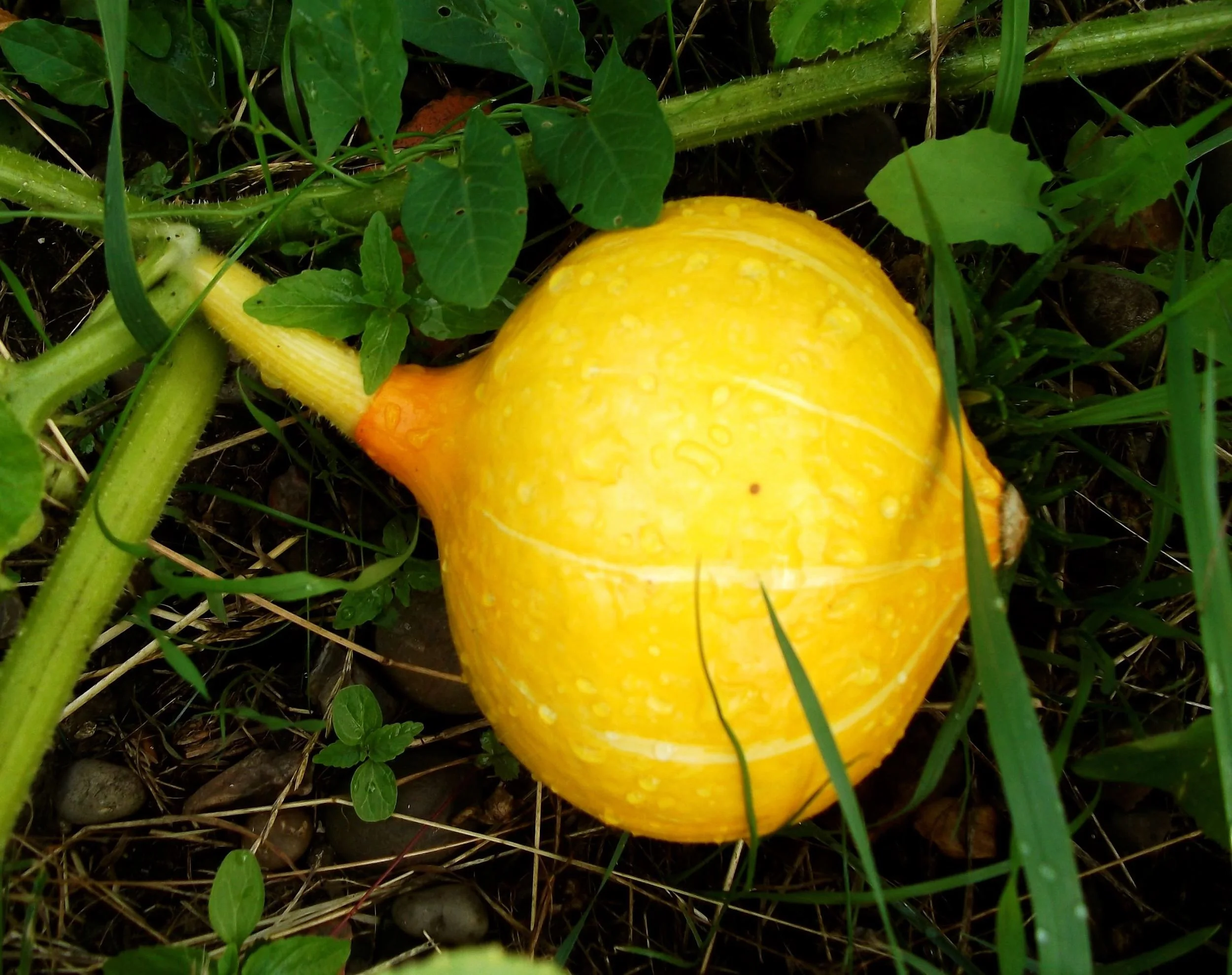 The red kuri squash is also doing well, there's two fruits doing well and it looks like more could be on the way too. The plant is rampant, it's gone through the broad beans and tomatoes in one direction and is heading for the beans in the opposite direction. I think it's happy!