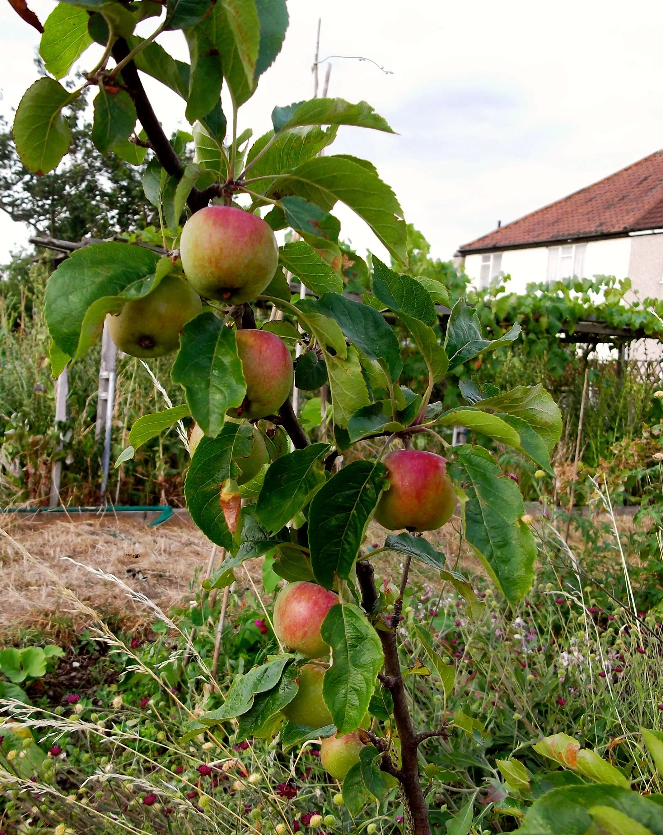 The apple tree, which we inherited is doing well - and the number of apples on it is giving it a stay of execution. I wanted to move it - and still do - but clearly now isn't the right time. I want to move it as I think it's in the wrong place and if it were to continue to grow where it is then it will cast shade over quite a bit of the plot, which I'm not so keen on.