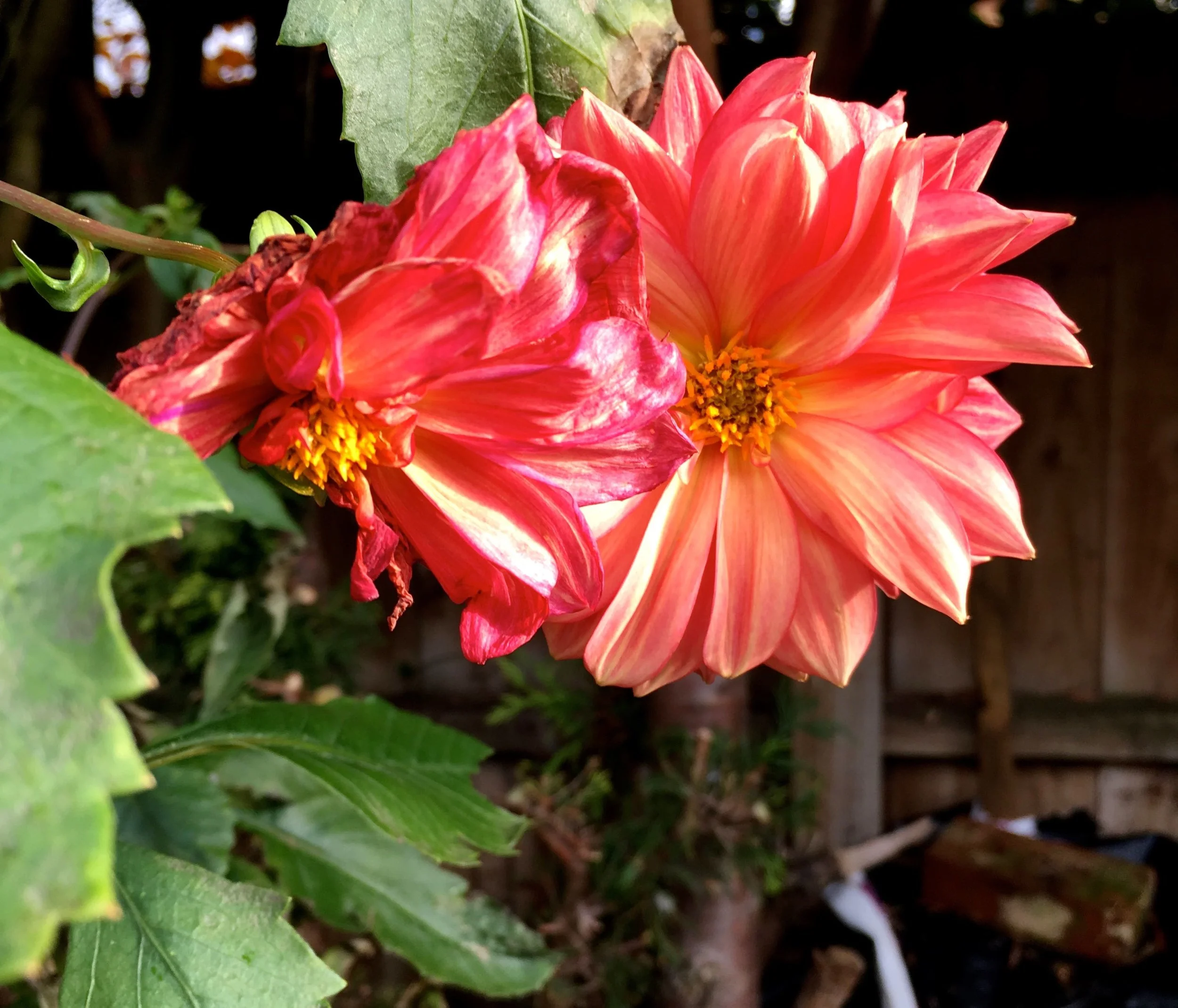 Last week I shared pictures from dad's garden from a month ago and it was still full of colour. I was curious to see how much it had changed in a month, and how the dahlias, roses and fuchsias had fared. And the short answer is relatively well. The dahlias were still flowering but were in that faded beauty stage, which can be equally pretty.