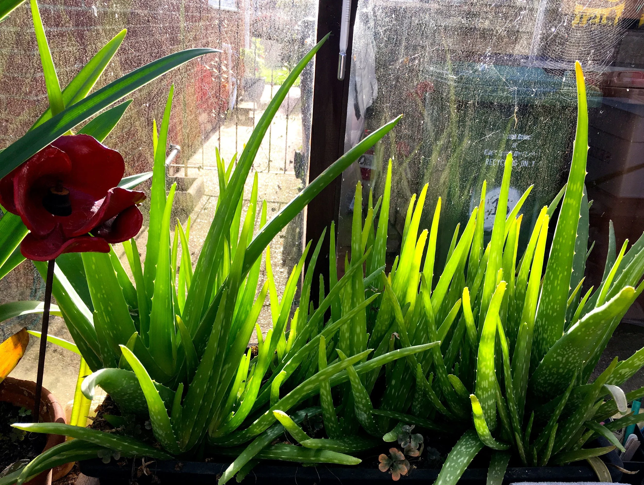In the greenhouse, the giant aloe veras still seem to be thriving and I'm sure, just like me, they were enjoying the warmth of the sun when it was out. The oxalis and the heucheras actually seemed to have deepened their colour.