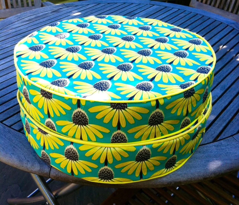 I bought the chairs on eBay with grand intentions, but then left them in the garden for quite a while before attacking them with some fantastic yellow paint. With them painted I then decided to make some cushions for them, without a pattern and without too much sewing experience and with piping. Well, let's just say there's nothing like learning on the job and if I can do this, so can you.