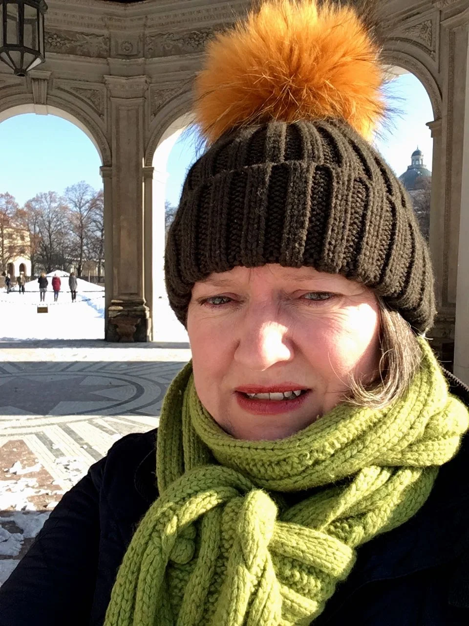 And the scarf came into its own in Munich where it was reportedly minus ten. I was wearing it, with my new bobble hat as I explored the Hofgarten in the snow, where I think my face tells you just how cold it was!
