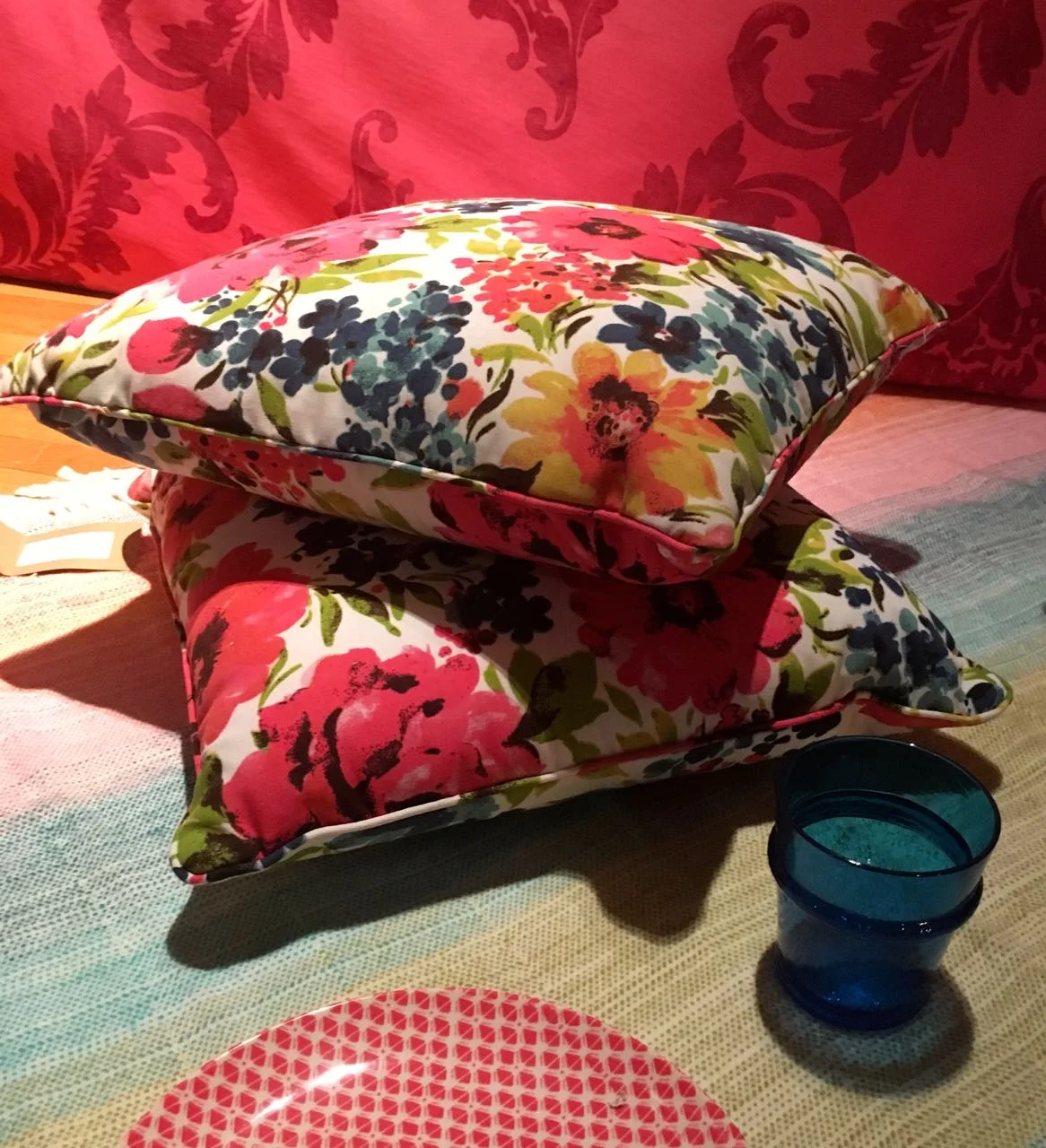 This chair has a retro feel to it doesn't it, and it's got my parrot on a cushion. I like the brightness of the colours, and I loved the footstool in the cooler blue, I think it's the patterns and the shadows that had me mesmerised.