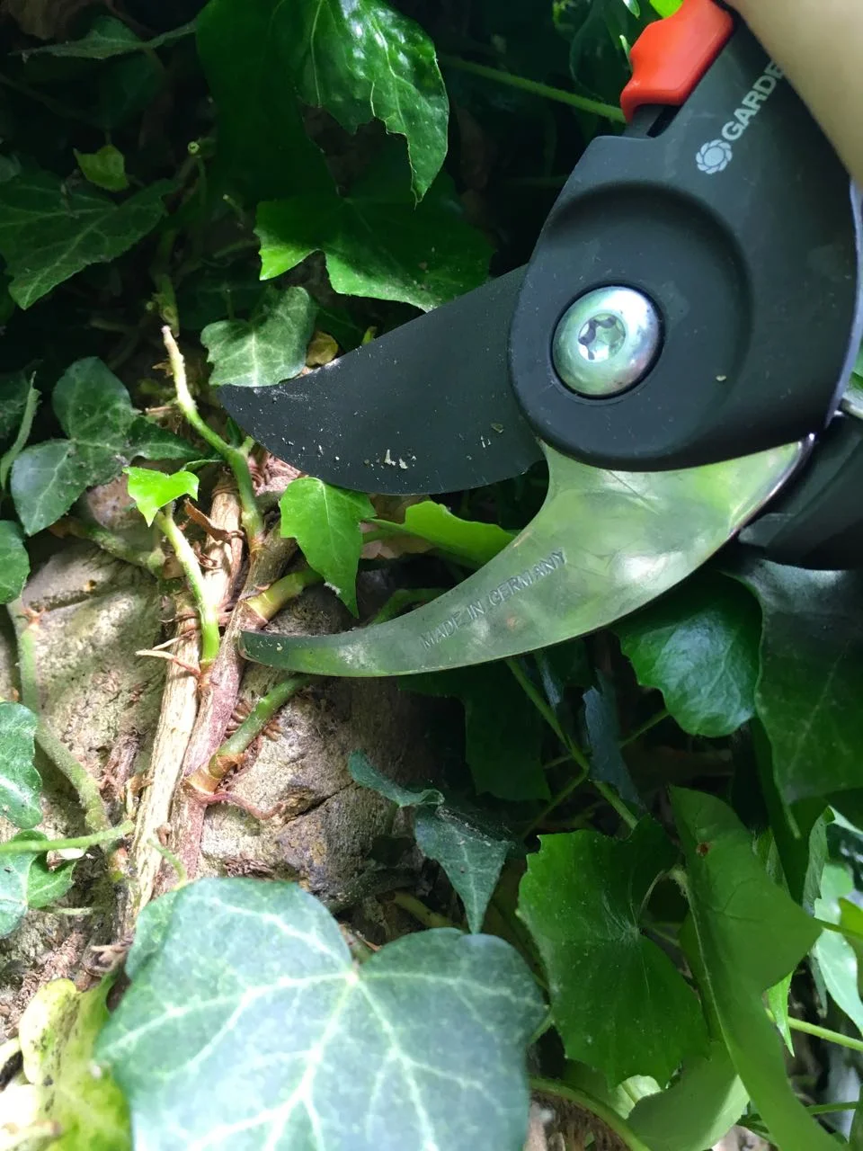 I started out at a comfortable level and was quickly impressed with the secateurs which have a more angled blade than I'm used to. This was super-handy for getting in behind the ivy and snipping it, especially on brickwork. The general advice for dealing with ivy on brickwork is to snip it in several places so it dies, and then to remove the dead ivy a few days later. Otherwise you risk damaging the brickwork as ivy is full of suckers, and a massively strong plant.