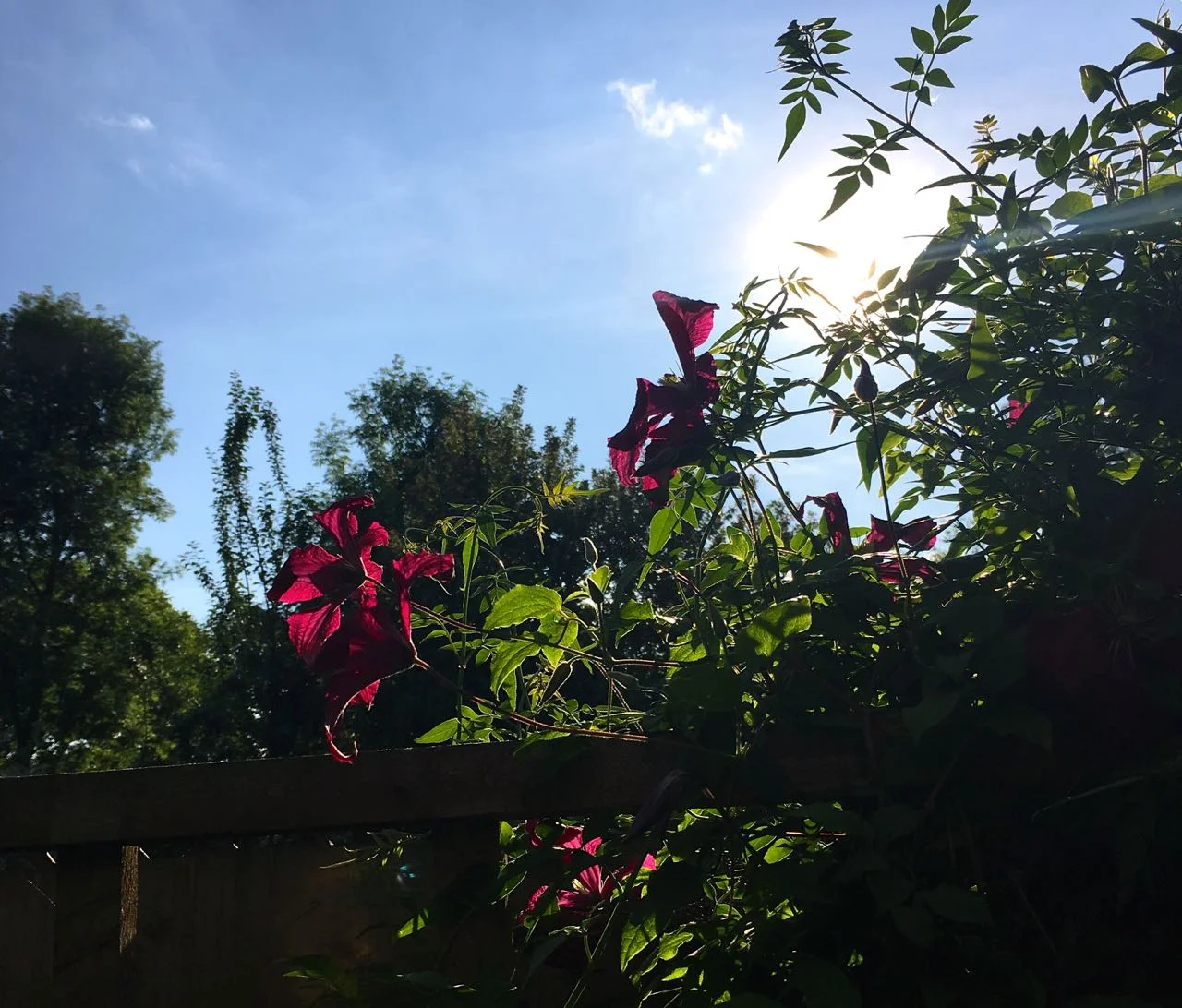 A VISITING CLEMATIS AGAINST THE SUN