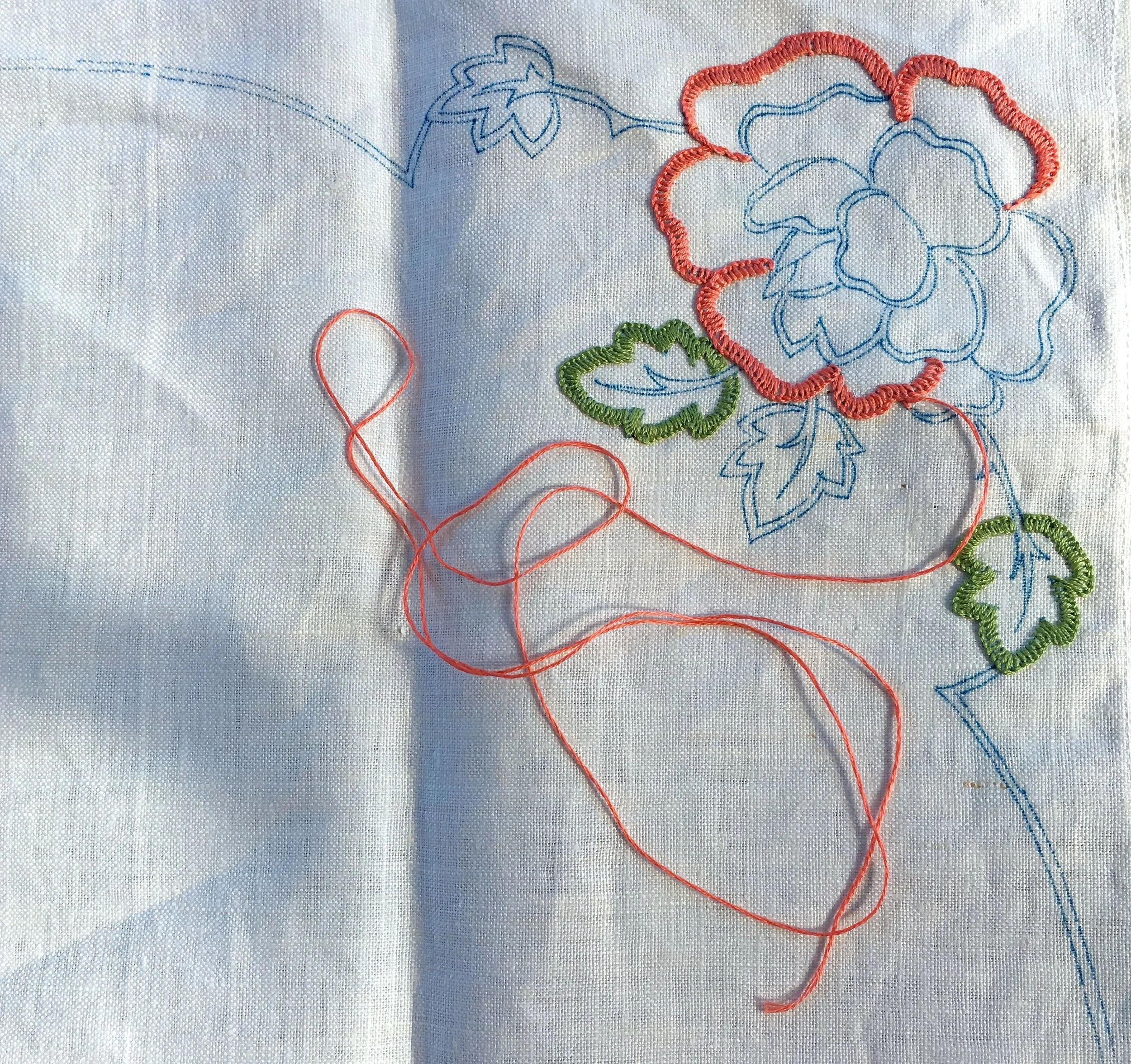 I think there's enough clues in the work that's already taken place to carry on, and make the tablecloth my own. I'll worry about what the stitch is when I'm closer to starting I think, unless you can identify it from these photos.