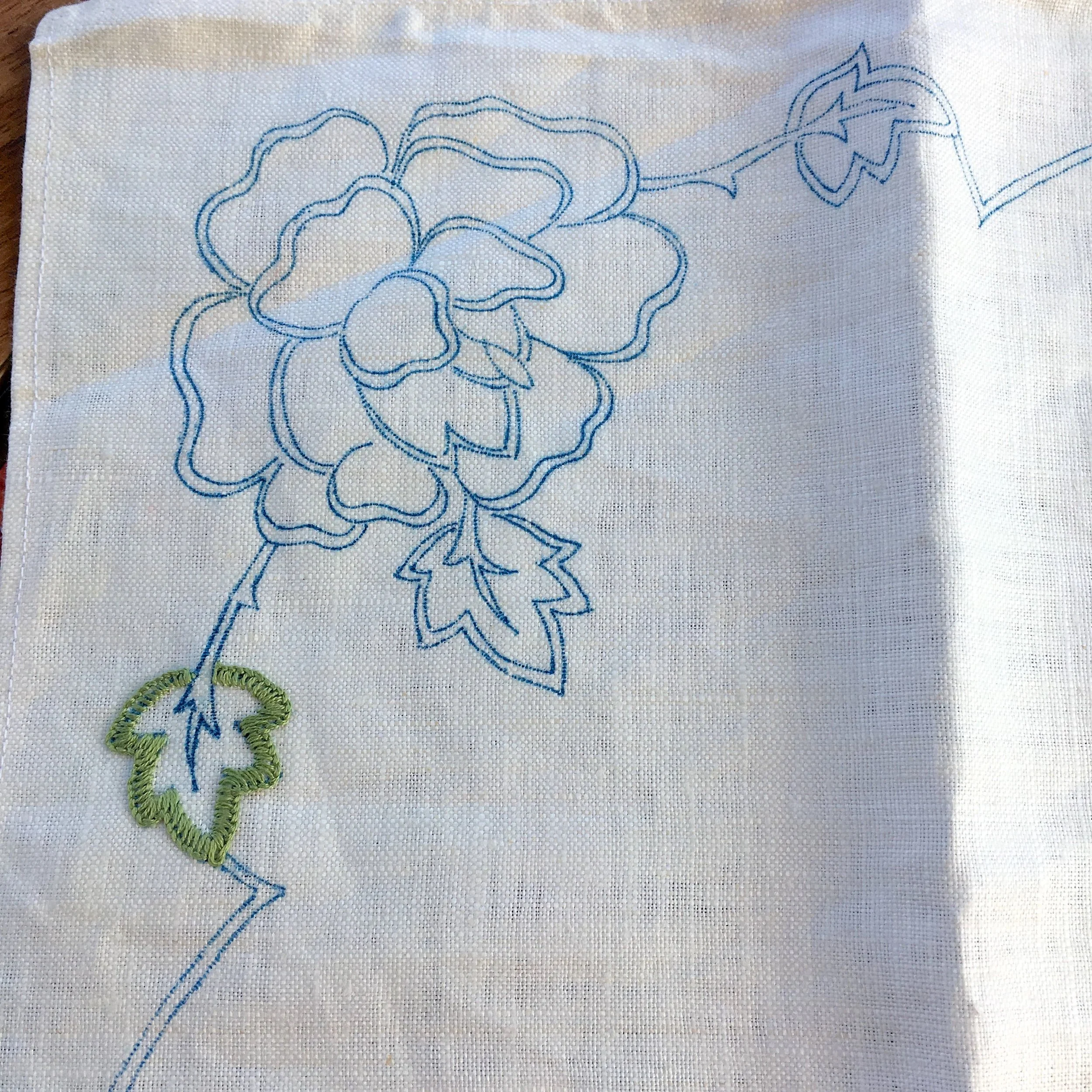 Now this post is likely to confirm a certain level of craziness you may never have realised I had. And that's ok, because when I saw this partially (in fact barely) completed embroidered tablecloth when we visited Snape Maltings over the summer, I knew there was no way I was going to leave this in the shop. I also knew that there was a high chance that I wouldn't do anything with this for quite a while and that's ok too (and now that I've found crochet, it could be even a bit further down the list, but the good news it's still on the list!)