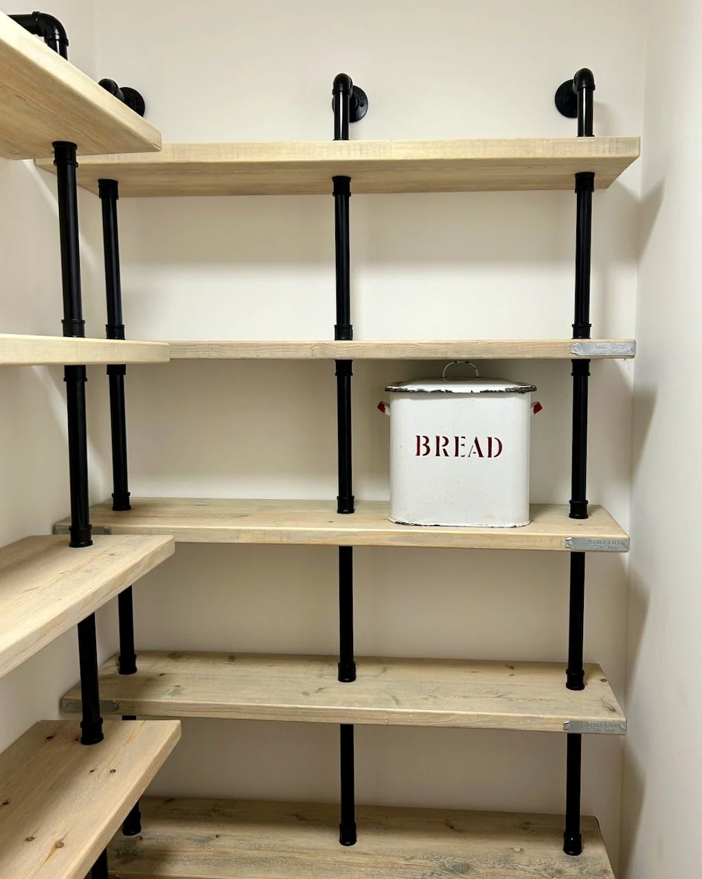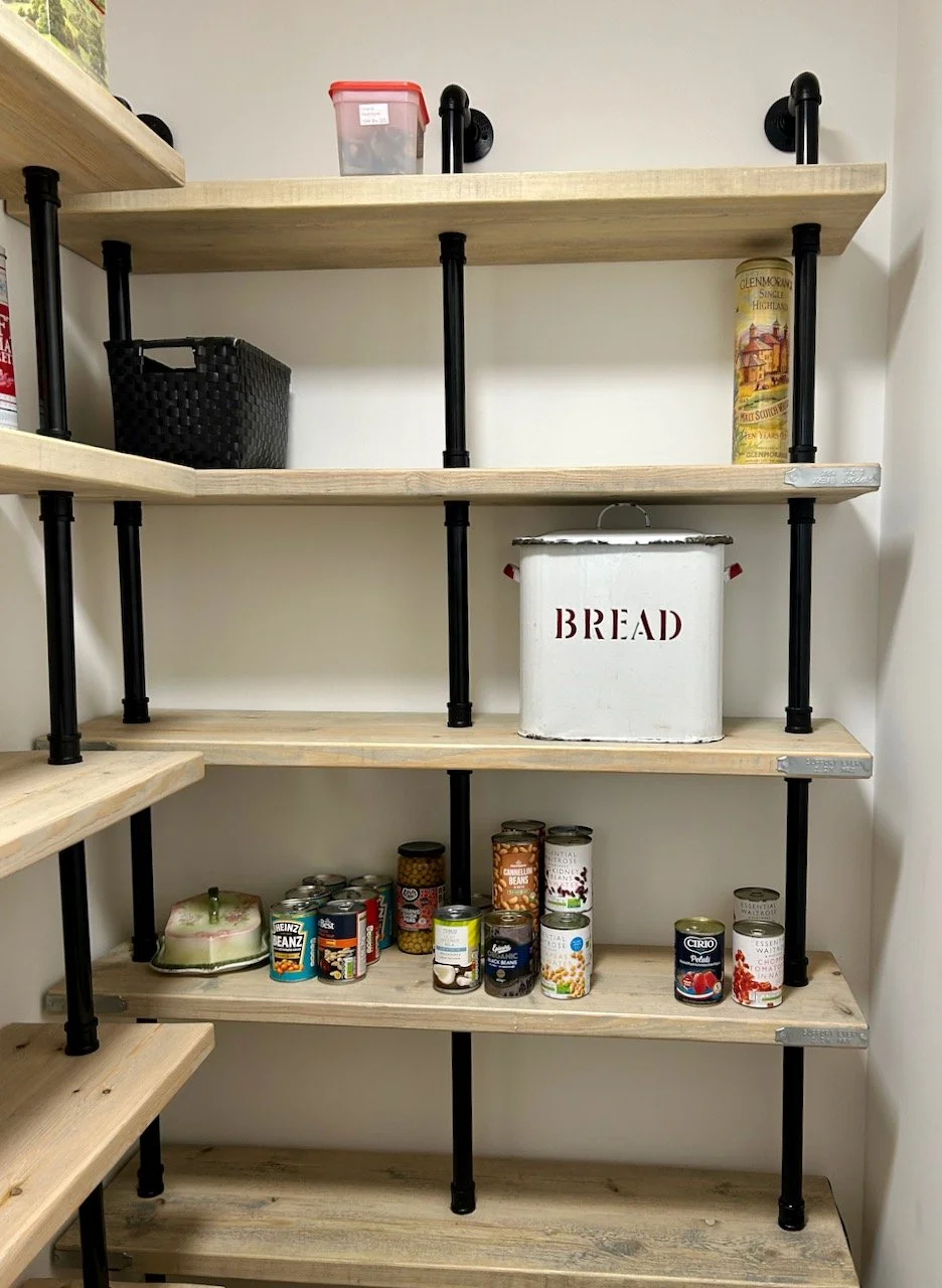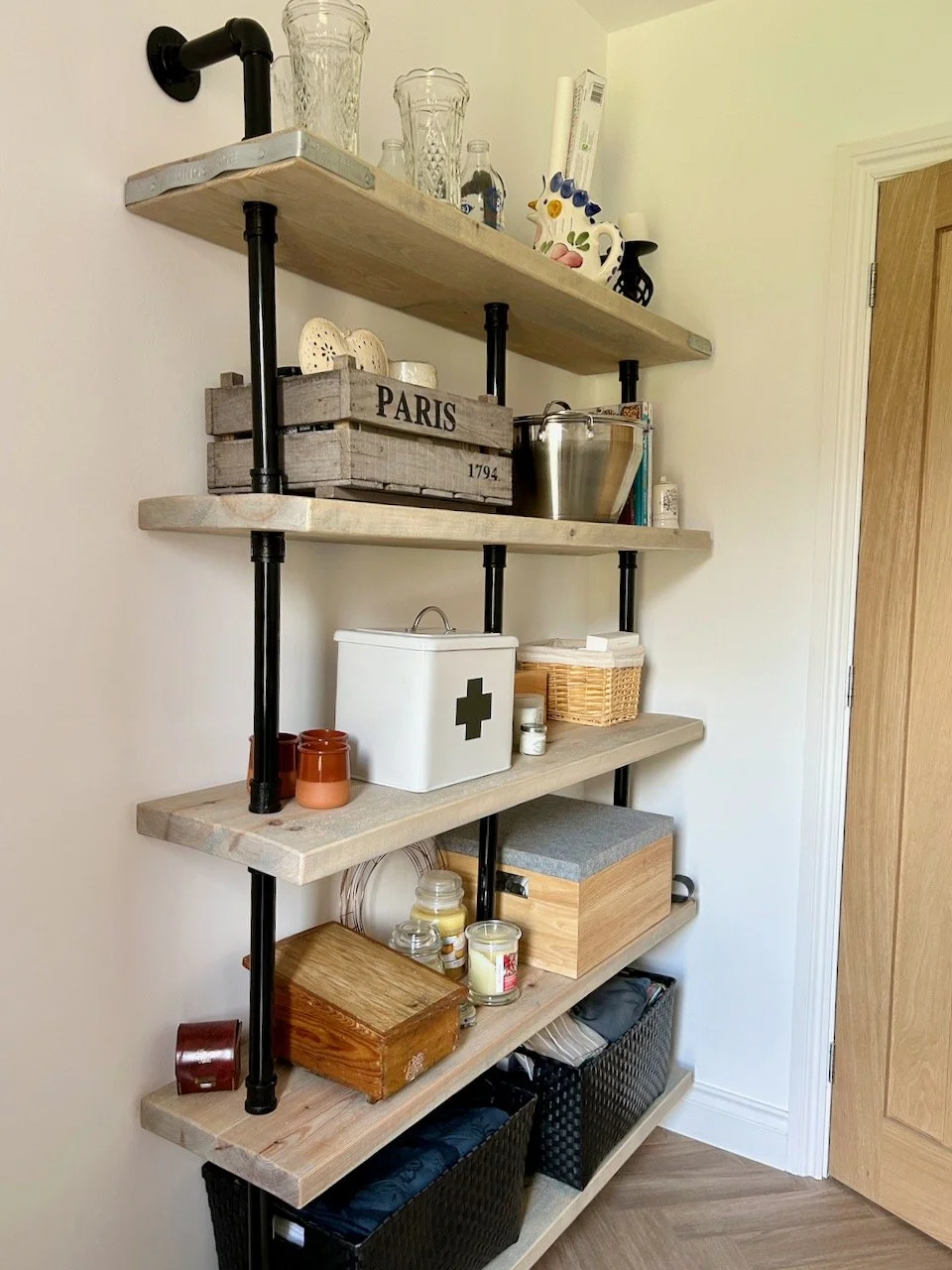 Coming from a house which had neither a pantry nor a utility room it was exciting (in a domestic kind of way) to have these spaces in our new house. Both spaces had room for, and needed more storage - the pantry especially, which was essentially a large walk in cupboard. We knew soon after we viewed our new build barn that we wanted something that stood out, but was also functional too, and we quite quickly settled on the idea of pipe shelving.