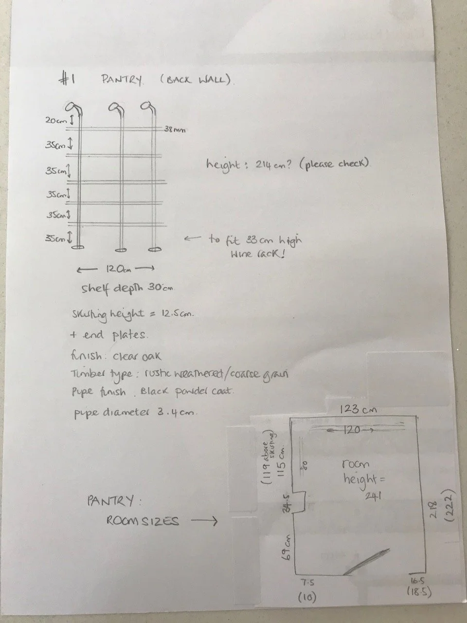 Thankfully this, and the smaller custom sized unit for the pantry came back with top marks, and it wasn’t long before we placed our order. They took a good couple of months to be made and be delivered, and when they did we were stepping over multiple boxes as we’d ordered a lot of shelves. But once they were here we were keen to get started, or rather I was keen for MOH to get started!