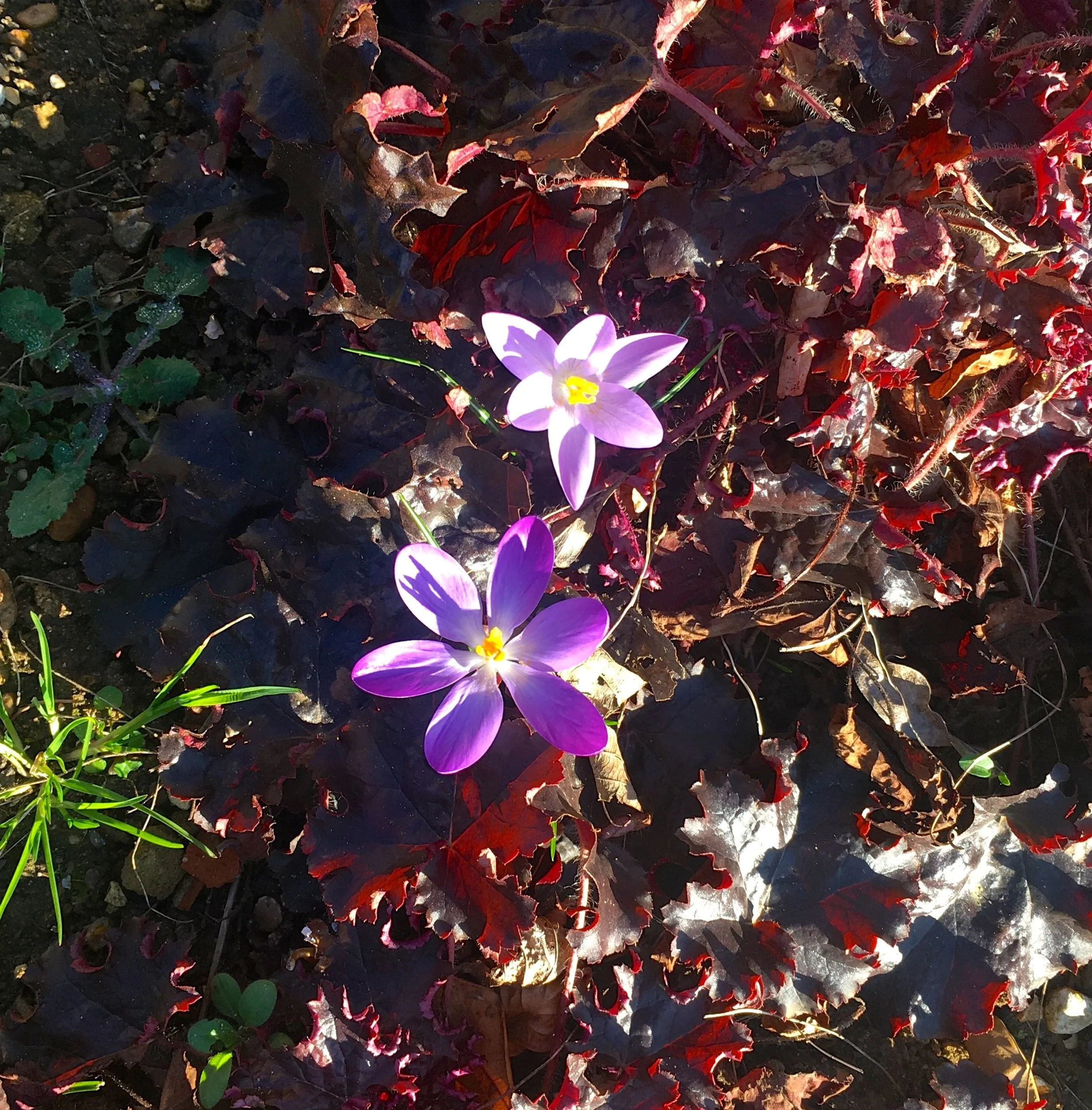 Crocuses in the sun in dad's garden