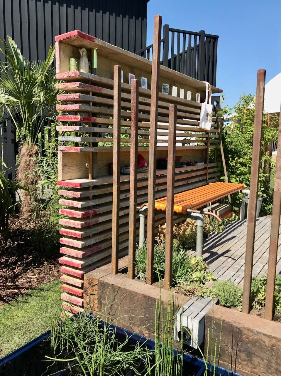 For me it was this scaffold plank structure that caught my eye as a clever way of adding something that would give height and structure throughout the year. I loved the detail of turning some planks vertical provided a nook for all sorts of paraphernalia, but mostly because every garden needs somewhere to put your cuppa, doesn’t it?