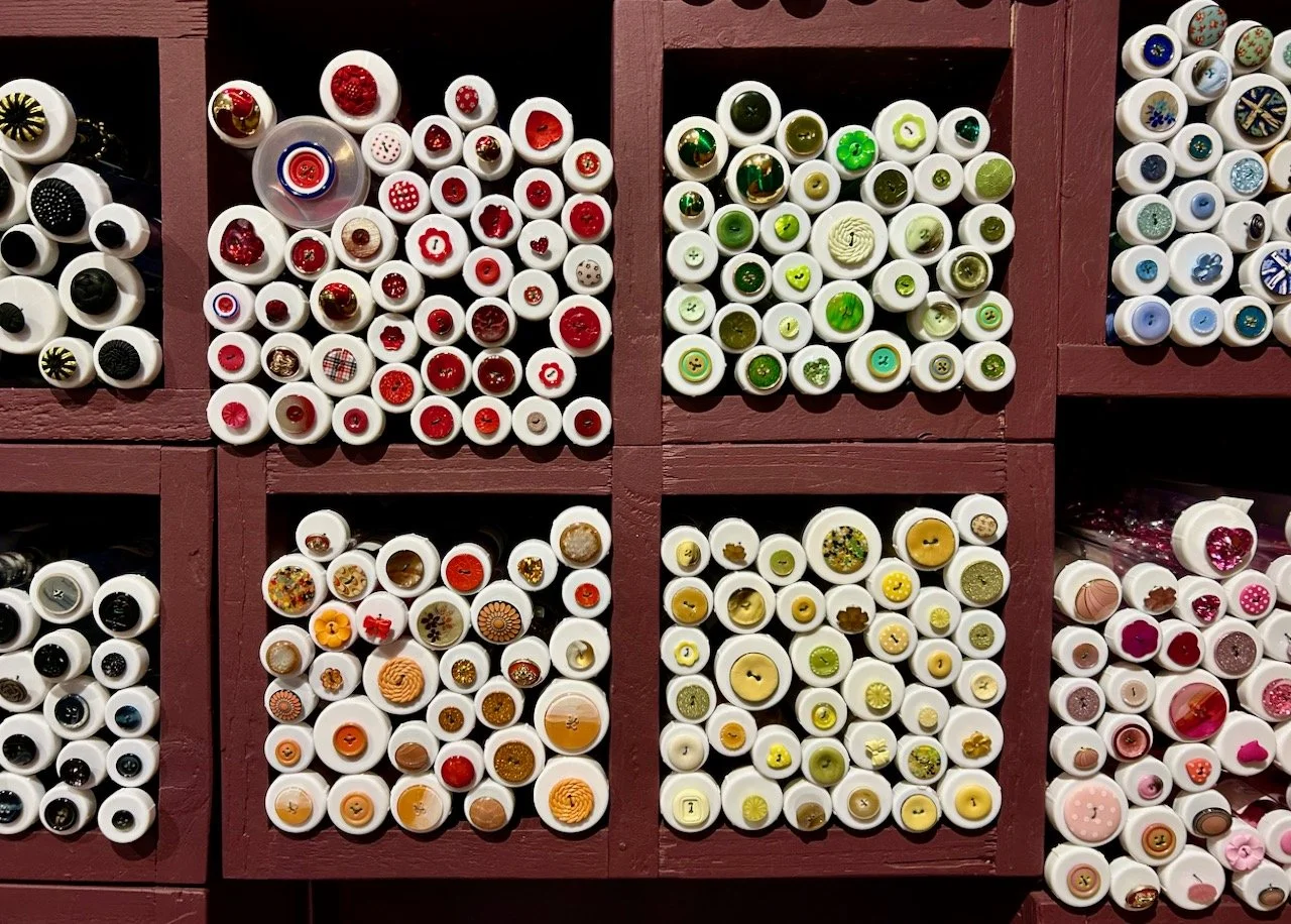I couldn’t think of any good reason to buy any of the buttons or ribbons, but was totally in awe at the choice of buttons and almost instantly transported back to ‘The Button Shop’ in South Norwood High Street in the seventies, though to be clear I don’t think it could ever claim to be on a par with Liberty, but I do remember endless displays of all colours, sizes and shapes of button nonetheless.