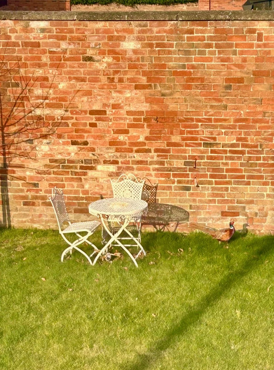 You may have already seen in other posts that we had a unexpected pheasant visitor to our garden this month - I’m including it here too, as it really made me smile - and wasted about thirty minutes of our day watching its antics. Aren’t the colours wonderful, and how like the brick wall are they?