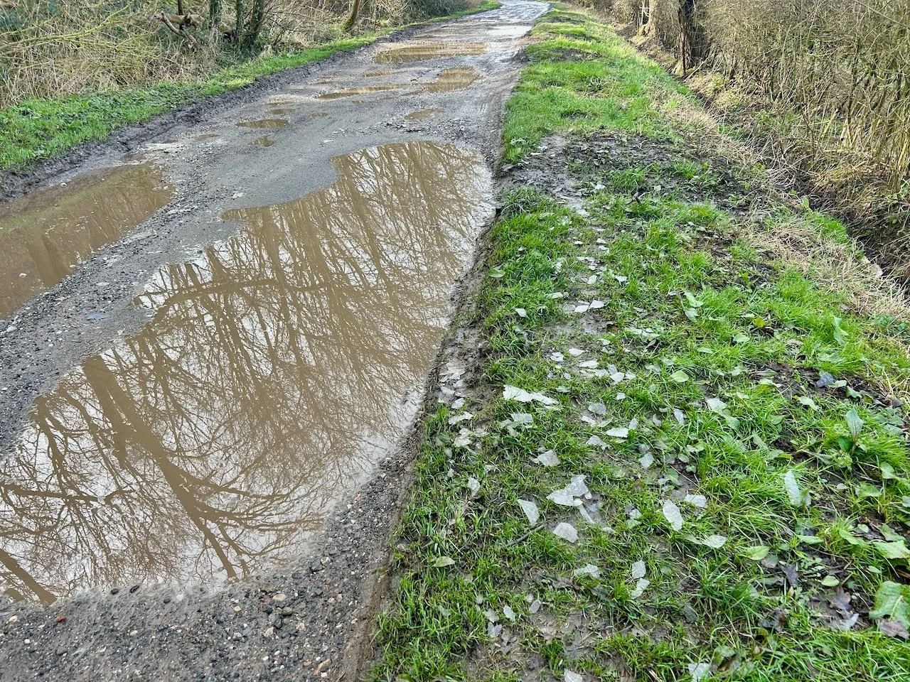 My photo this week is of one of the lanes in our village, and I loved catching the reflections of the trees in the muddy puddles. As you can see there was still some frosty ice on the grass verge - this spot doesn’t get much sun - but by the end of our walk (and with some unwanted fly tipping reported further down the lane - sigh) it was much, much warmer.