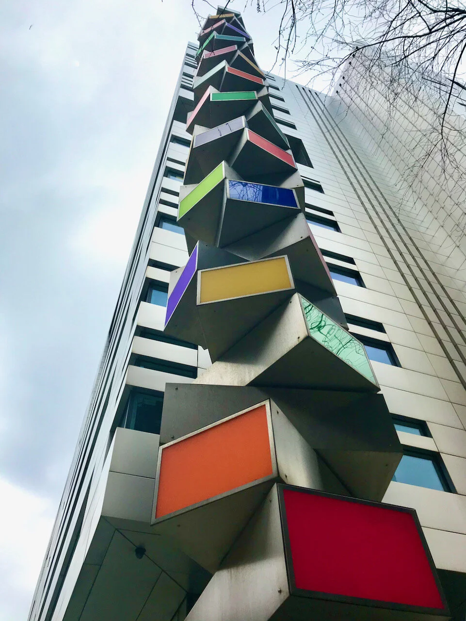 On our way towards Fenchurch Street we passed more ‘funnels’ these ones covered in a bright geometric design. Once there we found ourselves looking up, and up again and being slightly bamboozled by all of the lines.