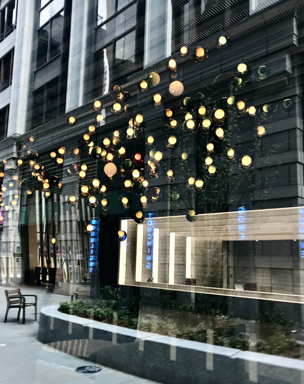 We also bumped into more sculptures than you’d think you would. I liked these neon signs outside an office block in St Mary Axe - You’ve gone touching leaves in the moonlight. The work is by lumiere artist Elisa Artesero is called Garden of the Floating Words, and has previously been on display in Canary Wharf.