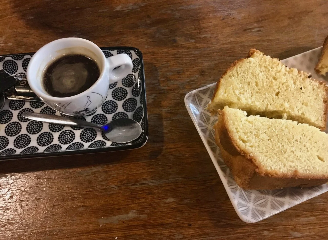 Though the last few days have been rather different weather-wise. It’s been chilly, wet and generally just a bit miserable. Even MOH hasn’t ventured out much this week. As always any kind of cake is welcomed here, and the coffee and cake in the photo below were probably the reason we almost missed our flight back from Lyon in February. That’s quite a call, but then again I was smitten with the plates.