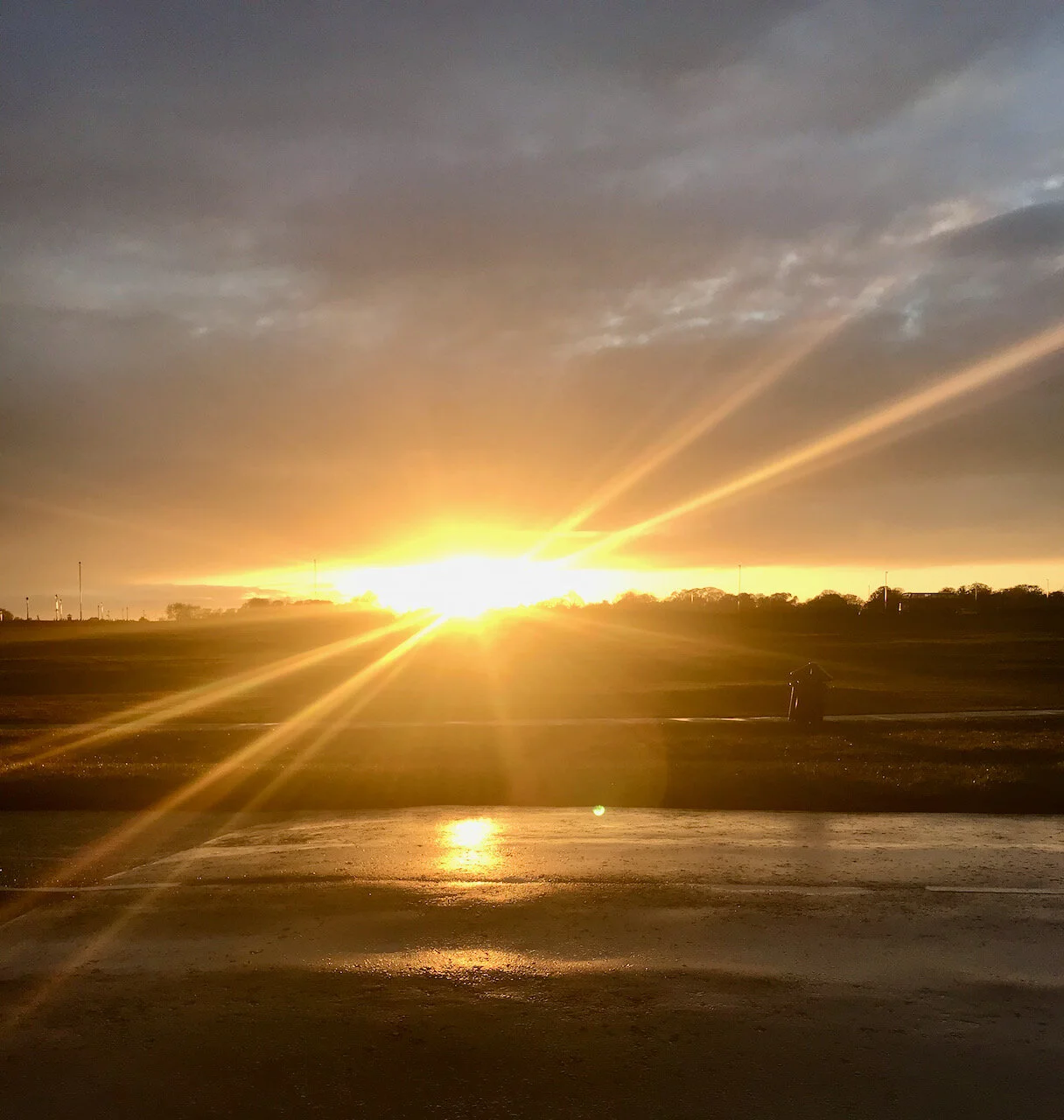 On walk home the evening was one of those with that glorious golden light and a sunset that would be worthy of any horizon, but if you look closely you can see the traffic speed hump in the foreground and a litter bin on the right hand side.